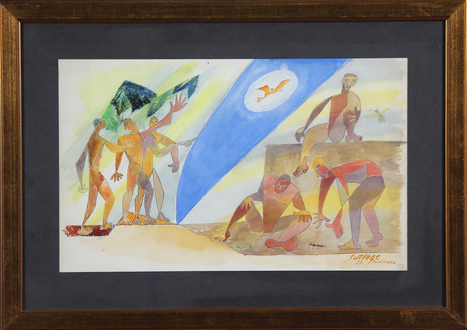 SURVAGE LEOPOLD (1879 - 1968) Casciana. 1951. Tecnica mista su carta. Cm...
