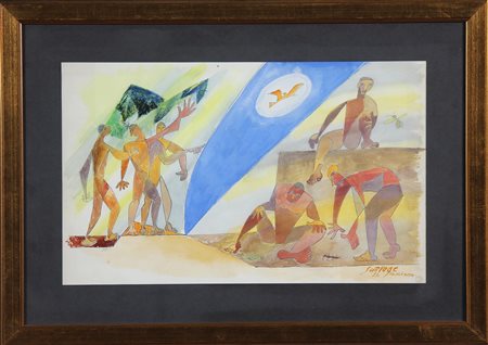 SURVAGE LEOPOLD (1879 - 1968) Casciana. 1951. Tecnica mista su carta. Cm 52,00 x 32,00. Firma, titolo e data in basso a destra. Esposizioni: mostra personale dell'artista presso la galleria Dantesca, Piazza Carlo Felice 19, Torino, 14 Aprile - 6 Maggio 1964. Provenienza: collezione privata, Torino. Cornice presente
