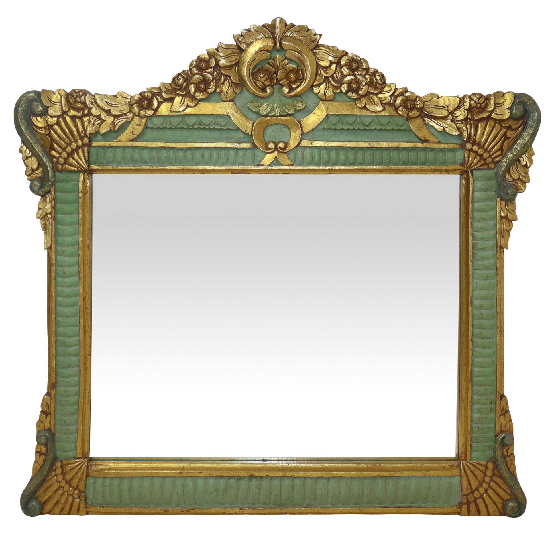 Specchiera con cornice in legno dorato e verde, 20° secolo