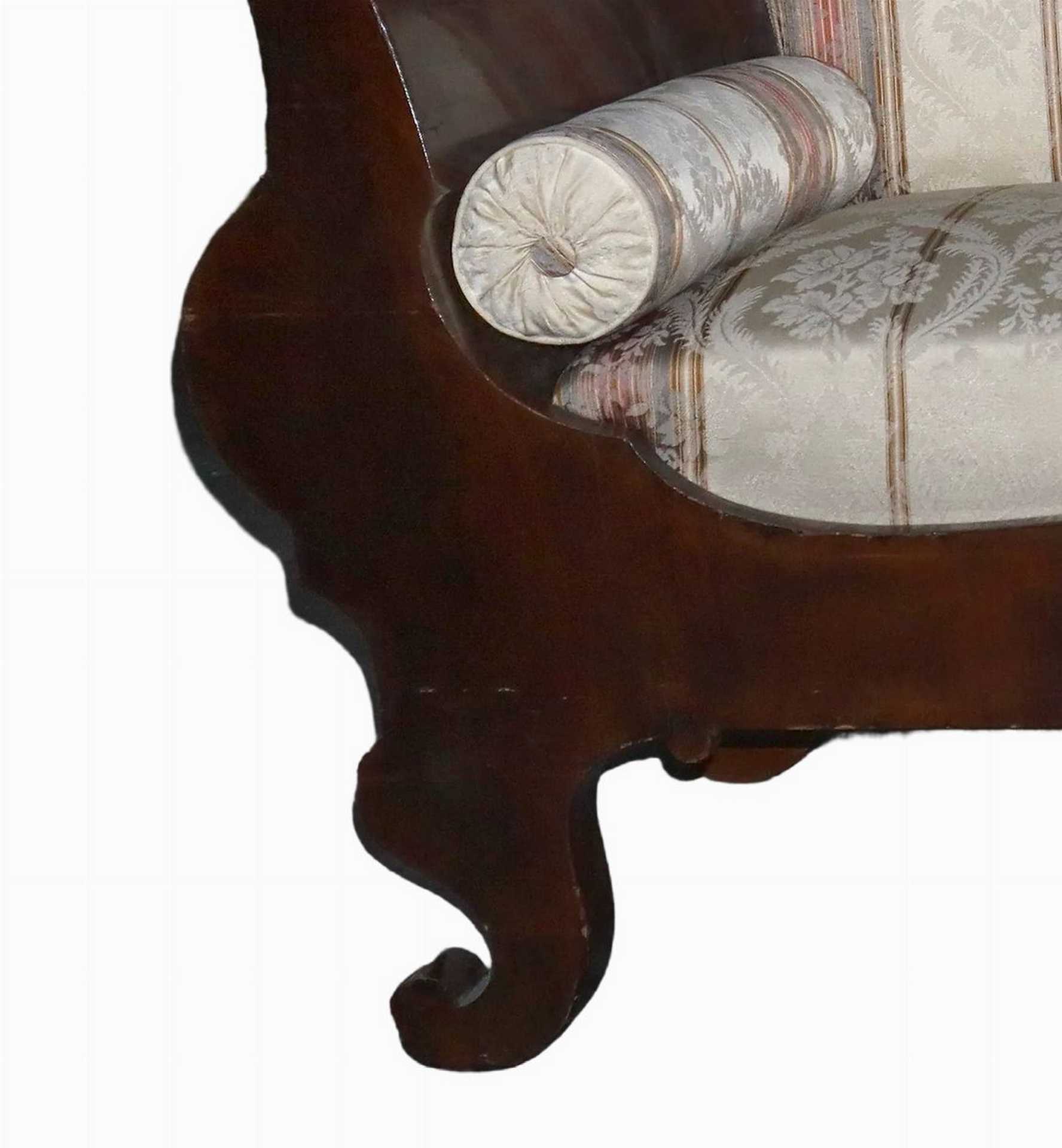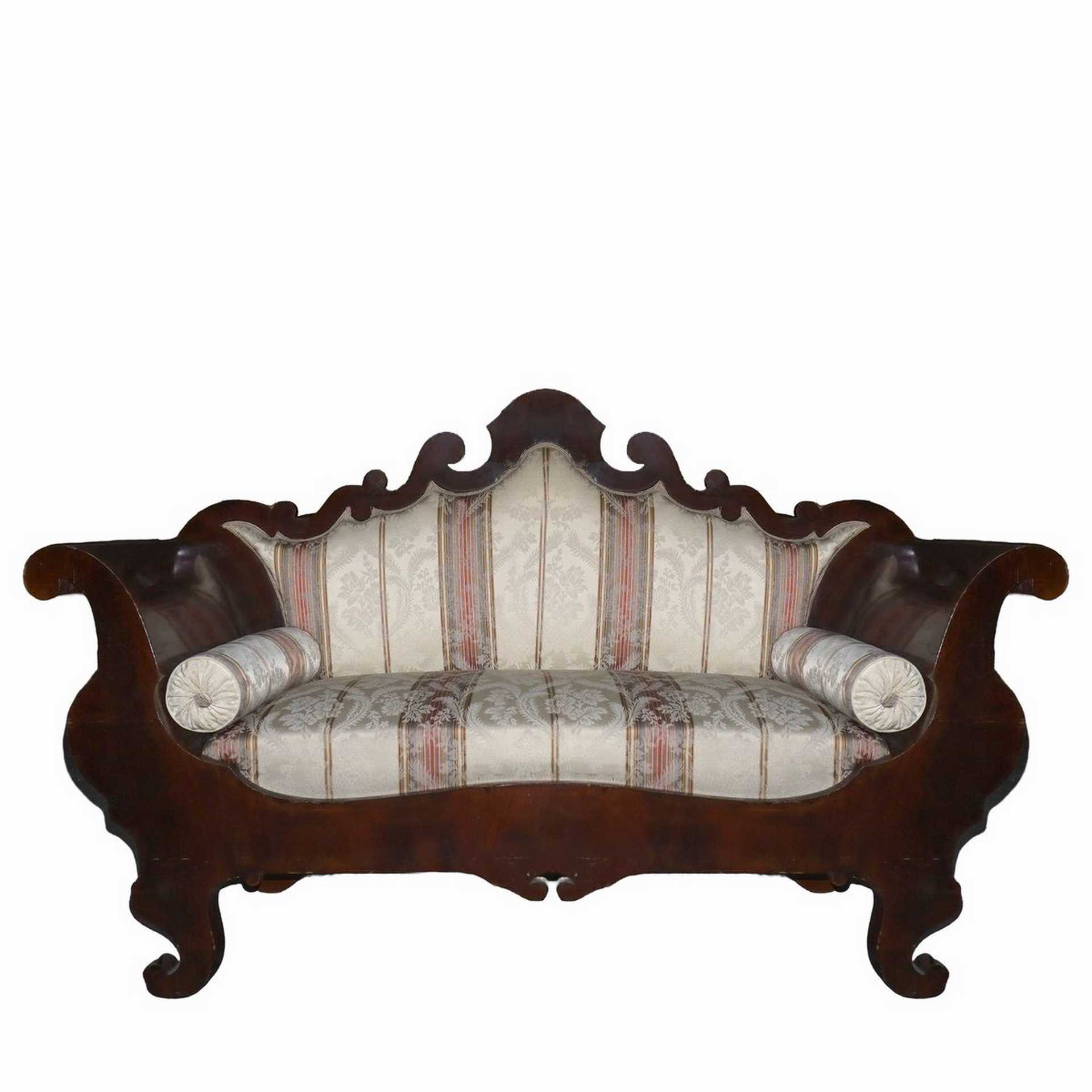 Divano Scatolato, First half of the 19° secolo Sicilia h cm 108 x 170 x 60 Con braccioli lateralmente scatolati e mossi, spalliera sagomata.Con braccioli lateralmente scatolati e mossi, spalliera sagomata.