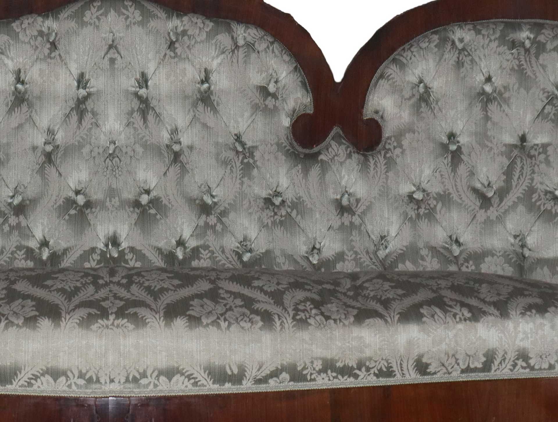 Divano Luigi Filippo, 19° secolo Sicilia h cm 100 x 190 x 75 Con spalliera sagomata e tappezzata in Capitonné, braccioli a ricciolo.Con spalliera sagomata e tappezzata in Capitonné, braccioli a ricciolo.