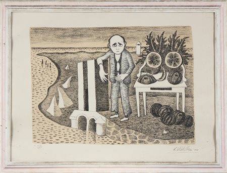 VIVIANI GIUSEPPE (1898 - 1965) Venditore di cocomeri. 1961. Acquaforte. Cm 60,00 x 43,50. 157/195. Firma e data in basso a destra. Cornice presente