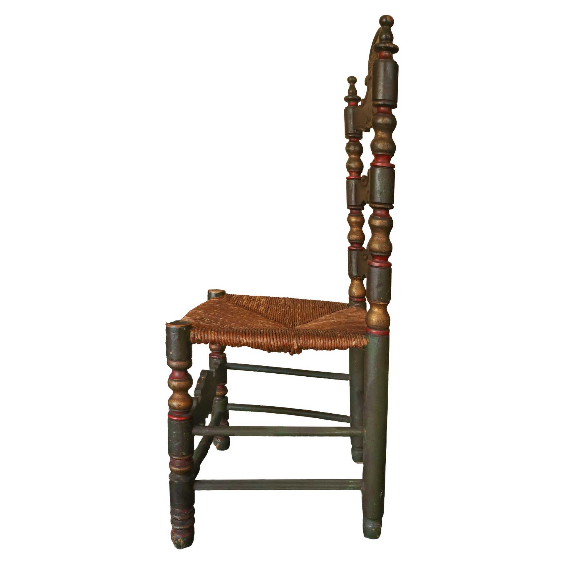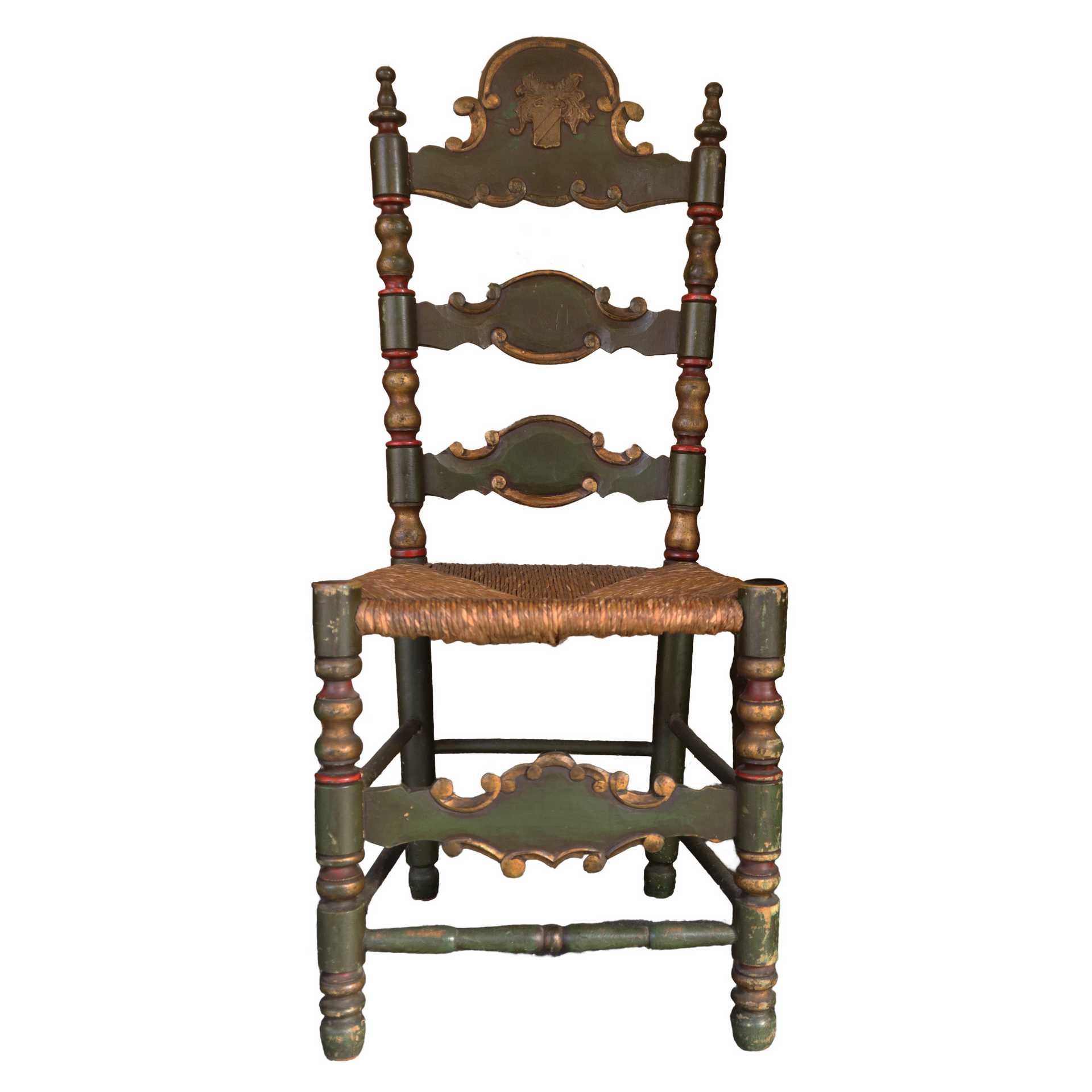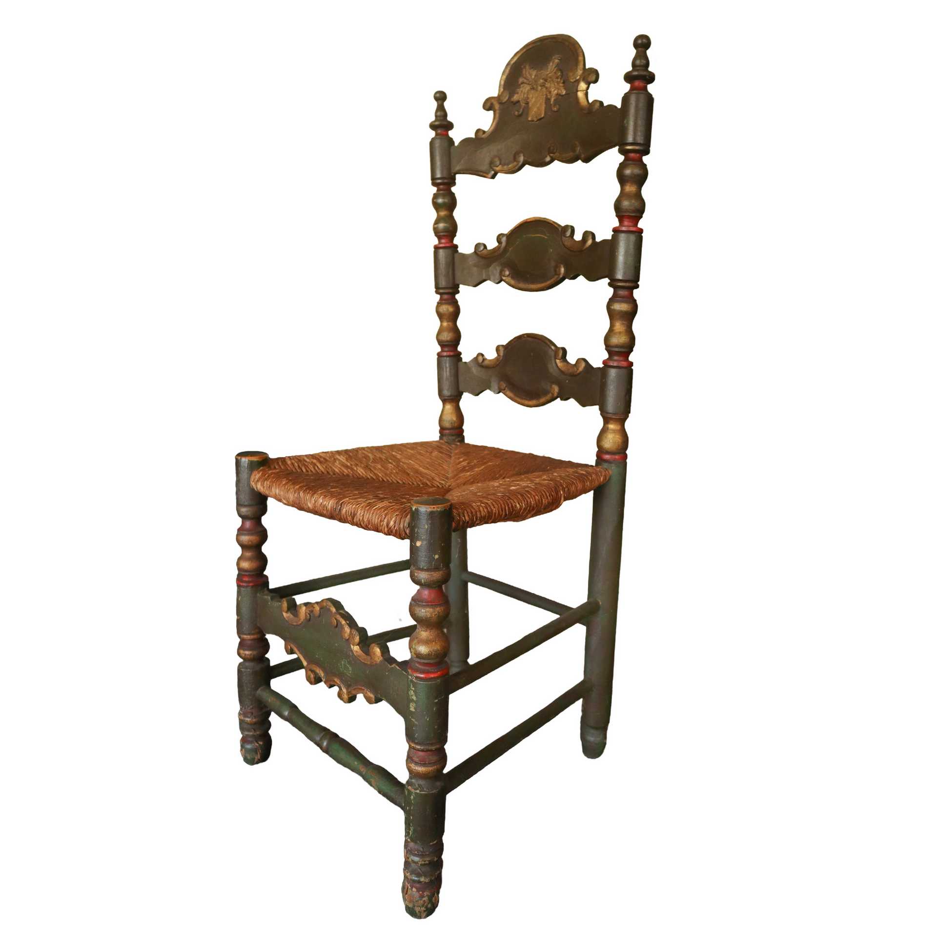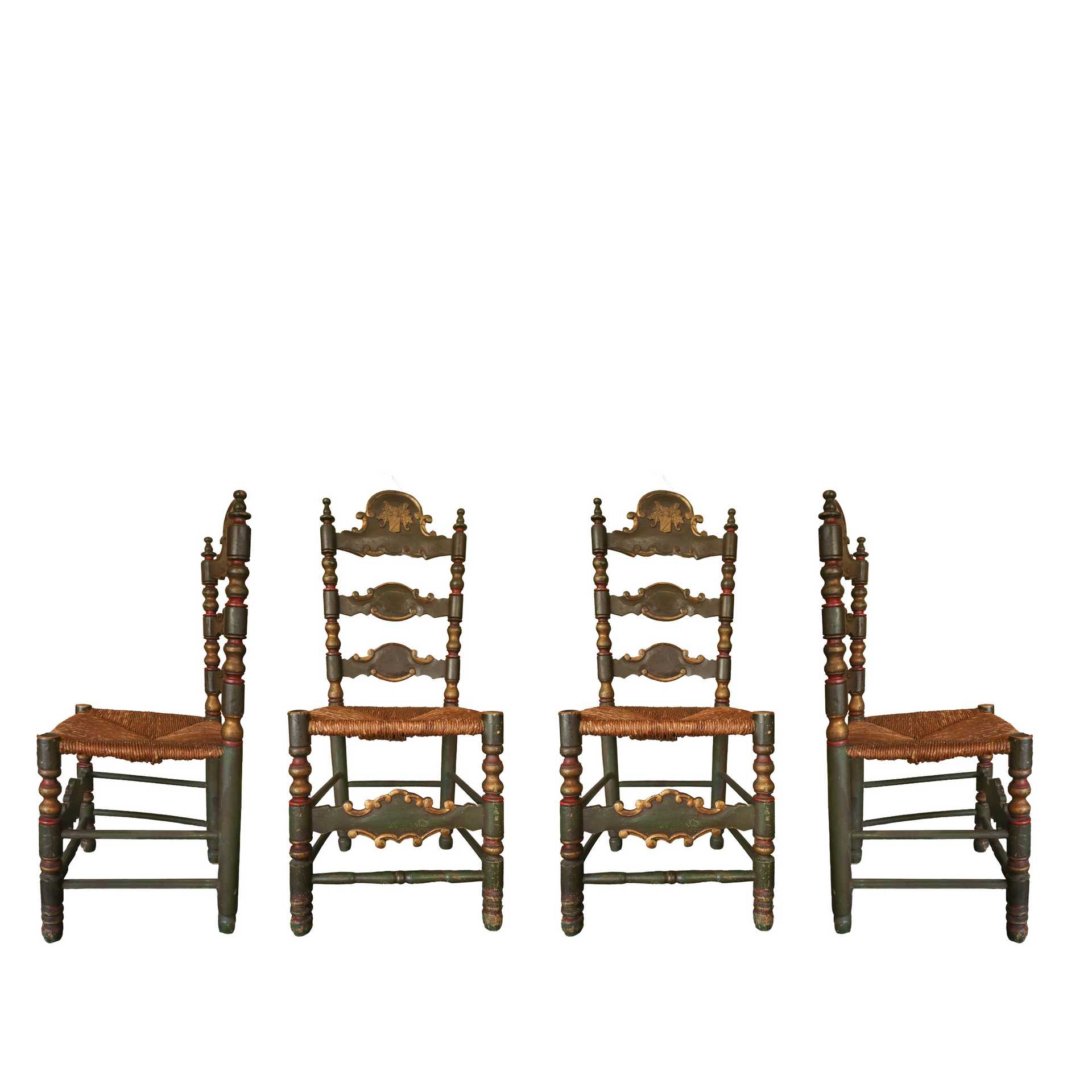 N. 4 seggioloni in legno laccato verde e oro con stemma, primi 20° secolo H cm 112x46 x43 Sedita impagliataSedita impagliata