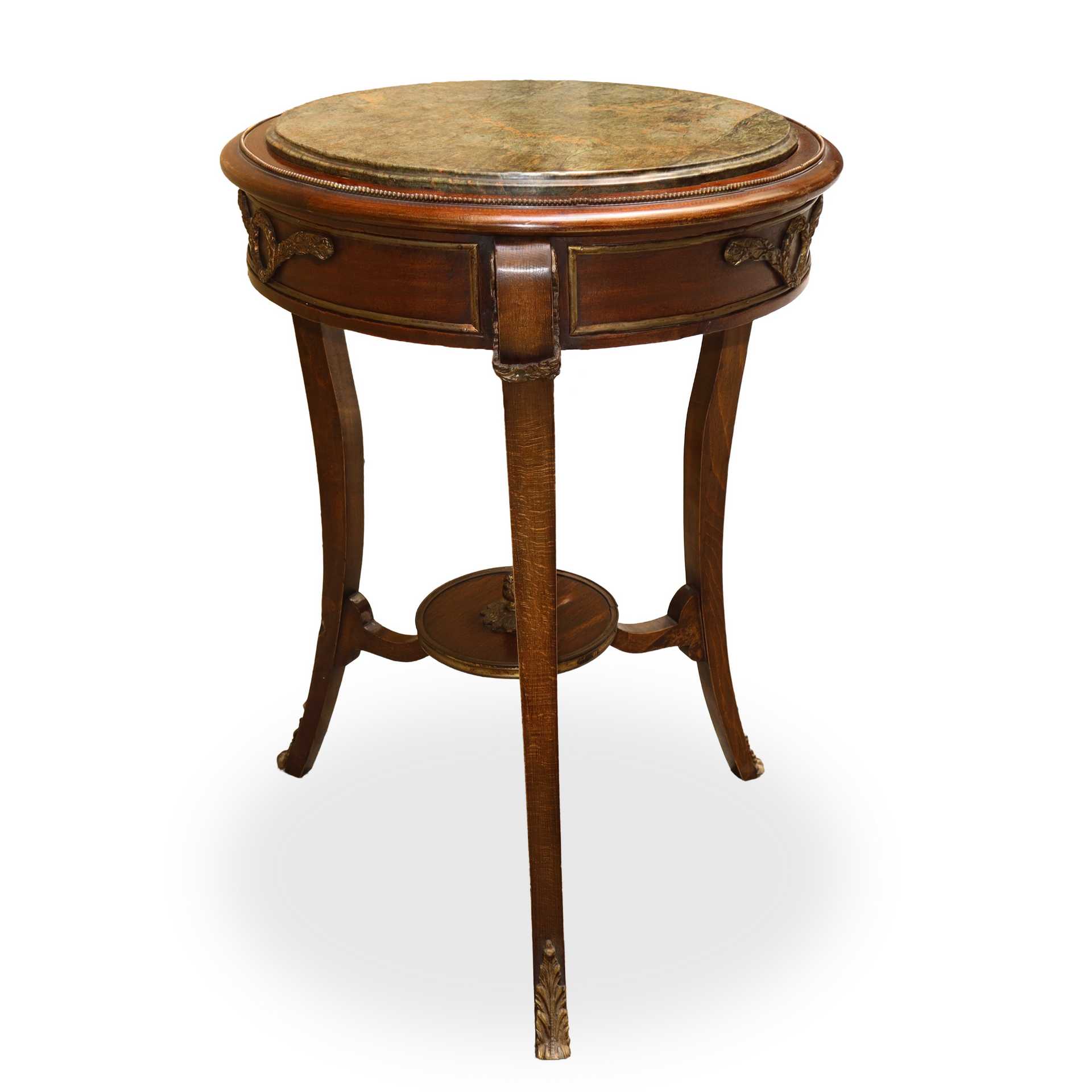 Lotto 121 | Tavolino con marmo al piano e applicazioni in metallo dorato nello stile Impero, 20° secolo
