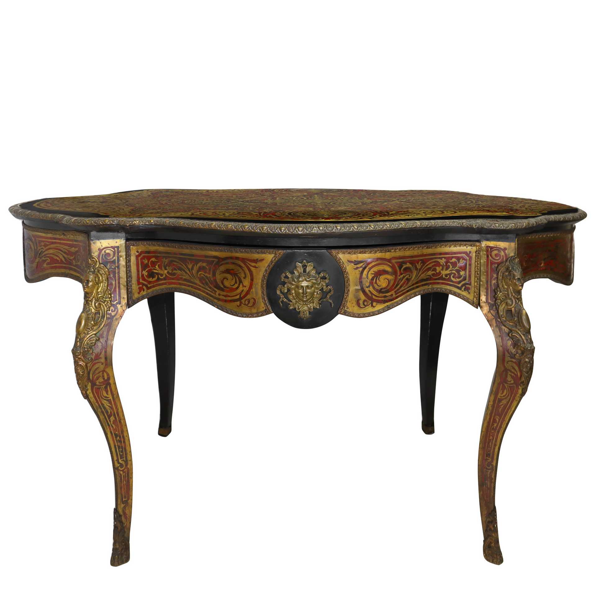 Tavolo Boulle, fine 19° secolo H cm 79x145, larghezza 92 Con intarsi in rame, bronzi alle gambe e nel sottopiano.Con intarsi in rame, bronzi alle gambe e nel sottopiano.