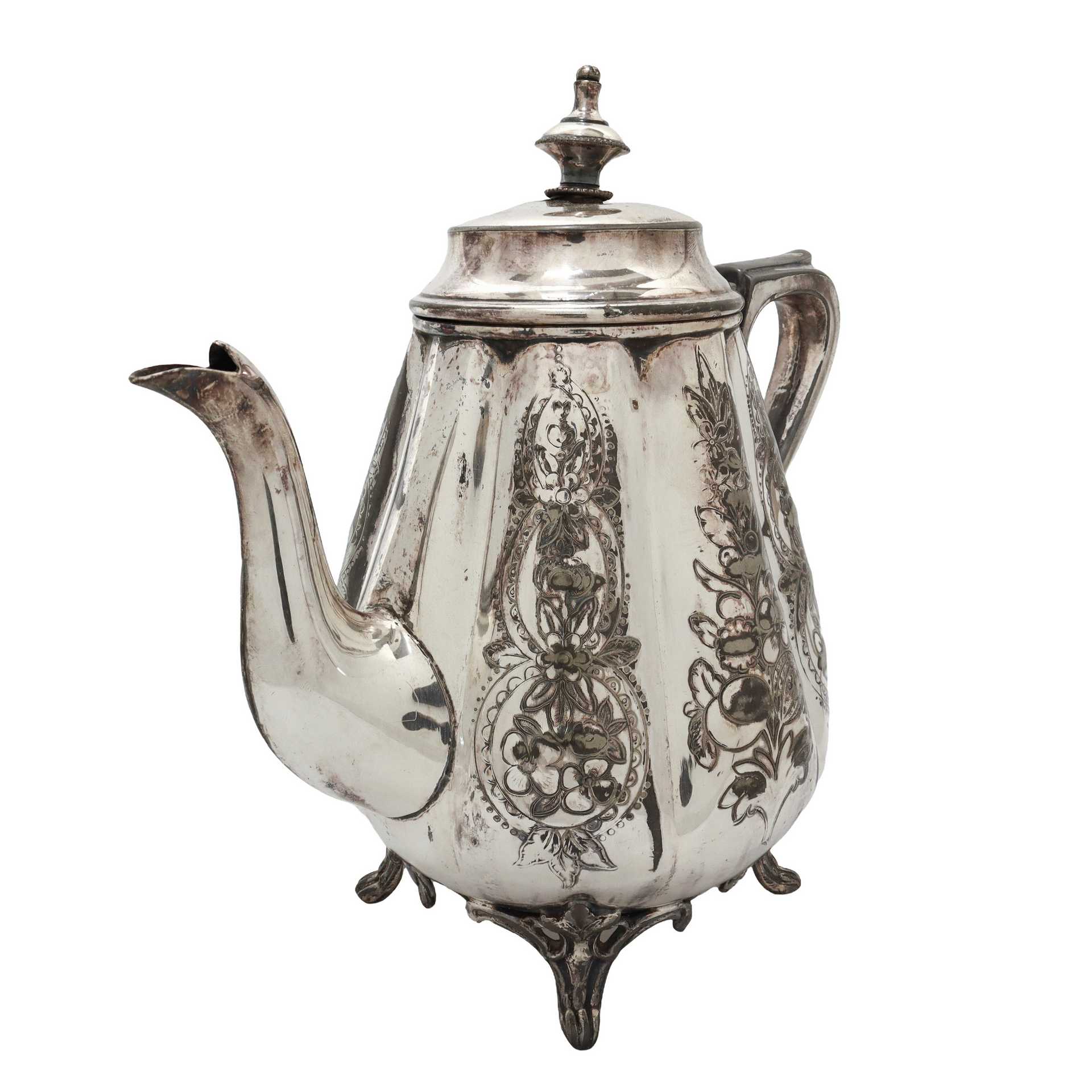 Teiera con lati bombati e decori floreali placcata in argento H cm 22x22 Alla base punzone Best Electr PlateAlla base punzone Best Electr Pfine