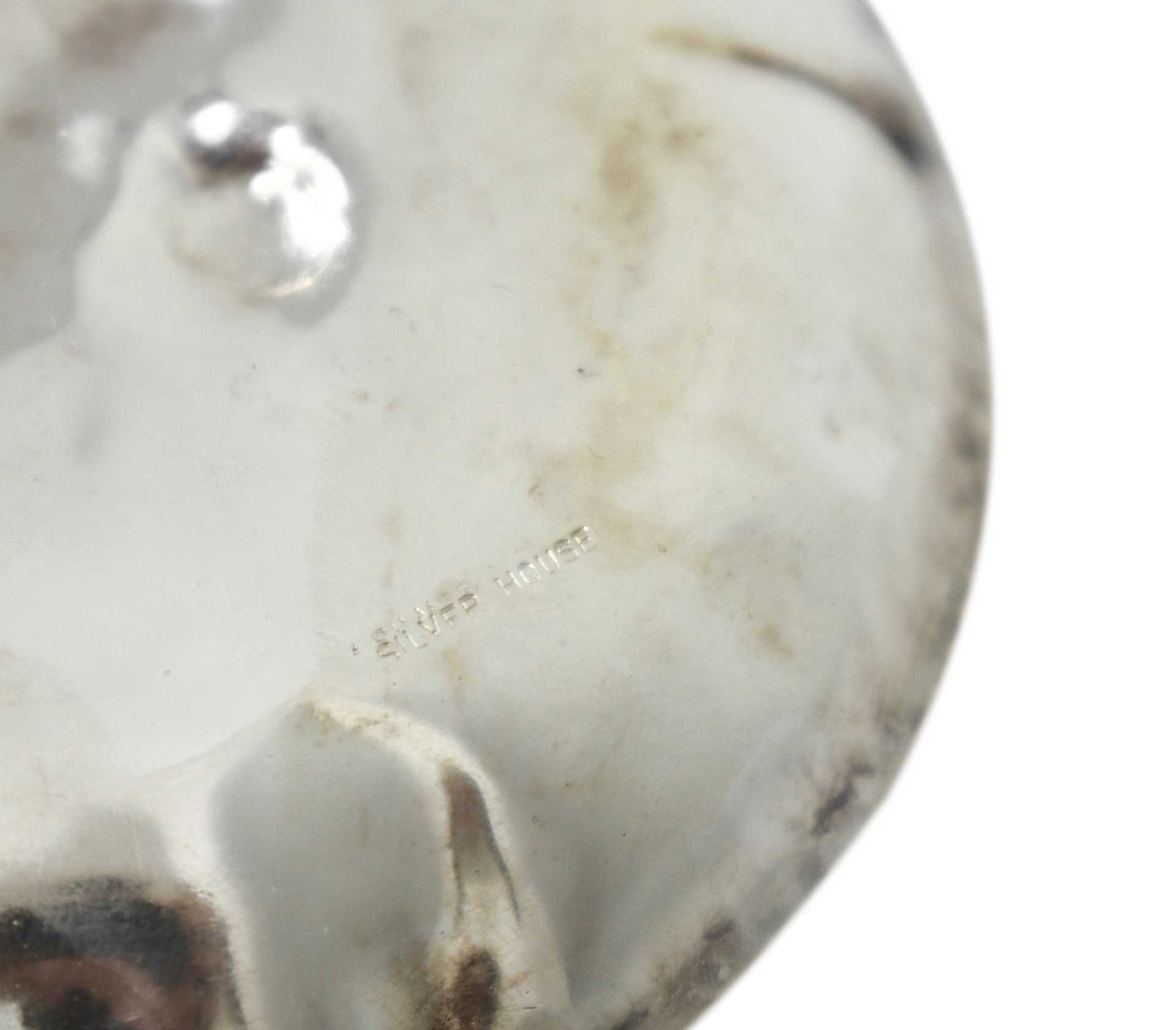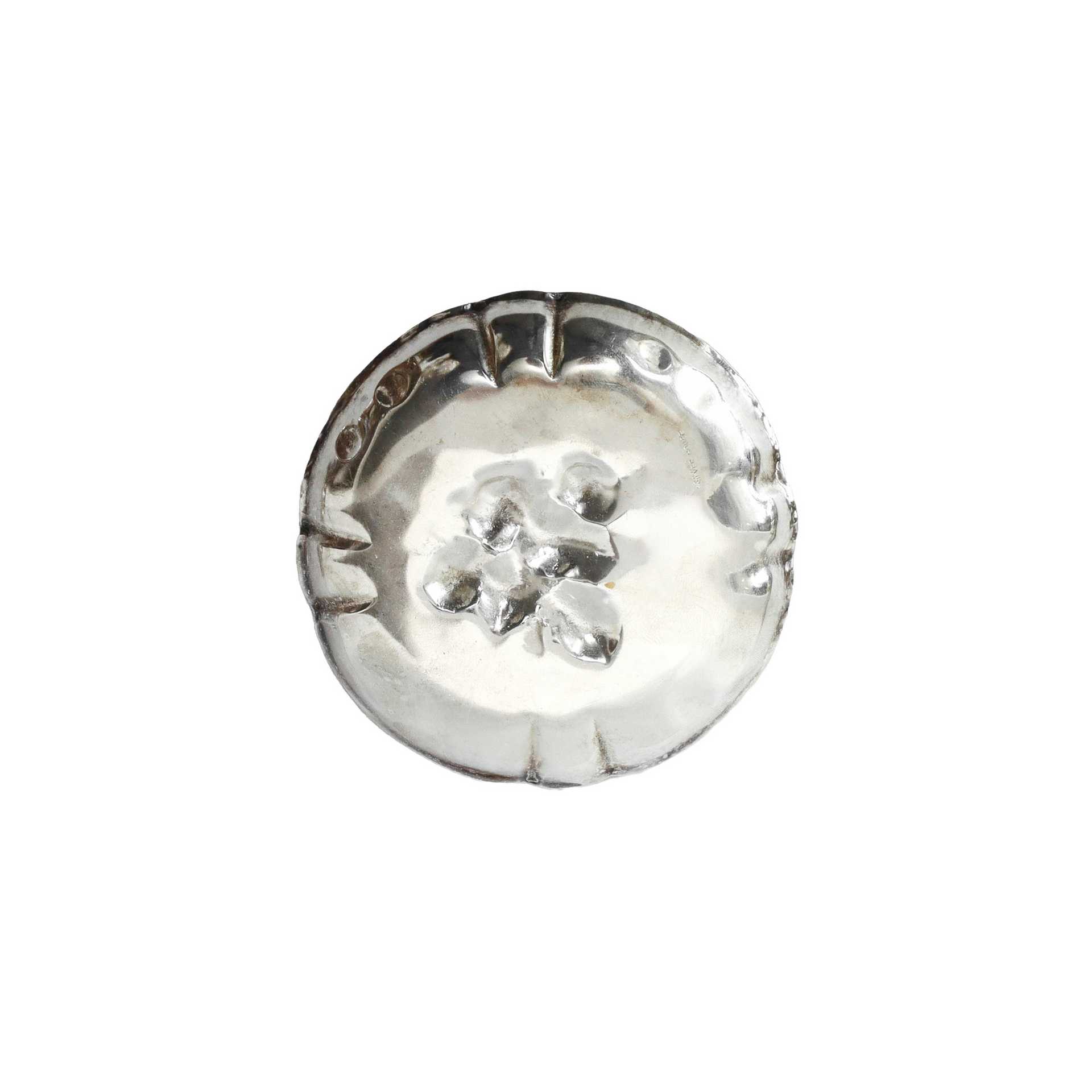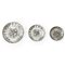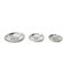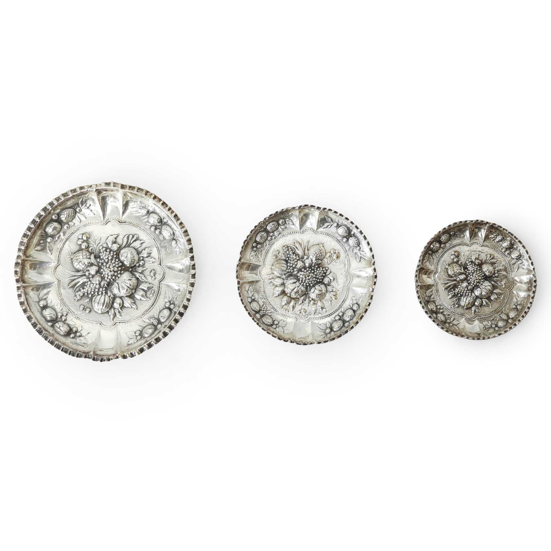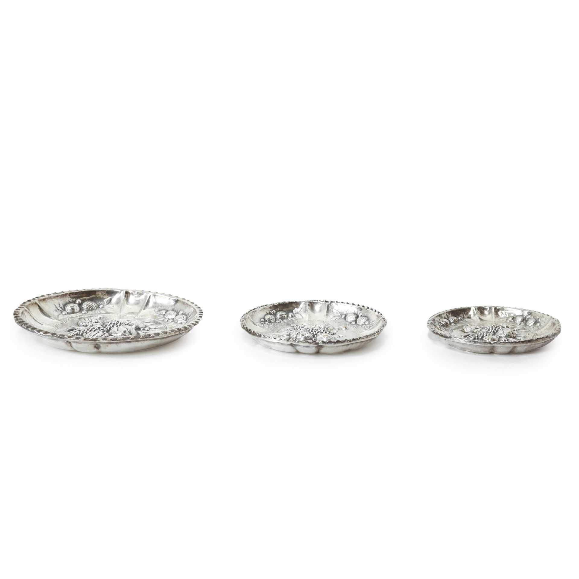 Tris di piattini in silver con decorazioni di frutti a sbalzo in argento diametri cm 9,6 -11,3 - 14,3
