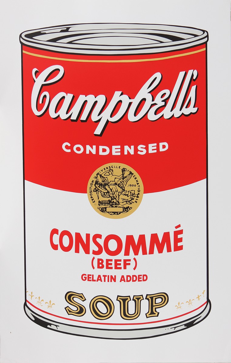 WARHOL ANDY (1928 - 1987) Campbell's soup. Serigrafia. Cm 63,00 x 100,00. Al retro timbro Sunday B Morning... Fill in you own signature.