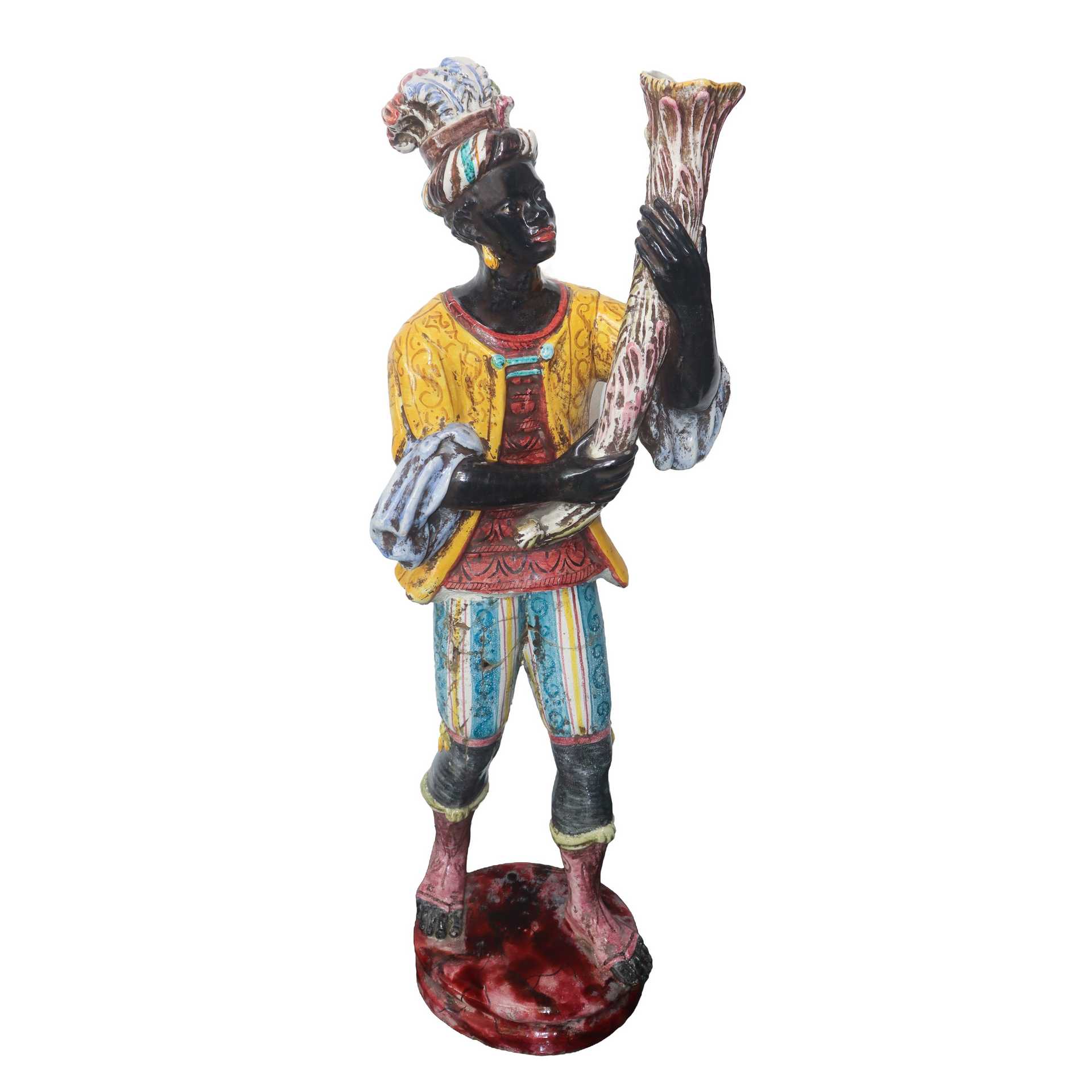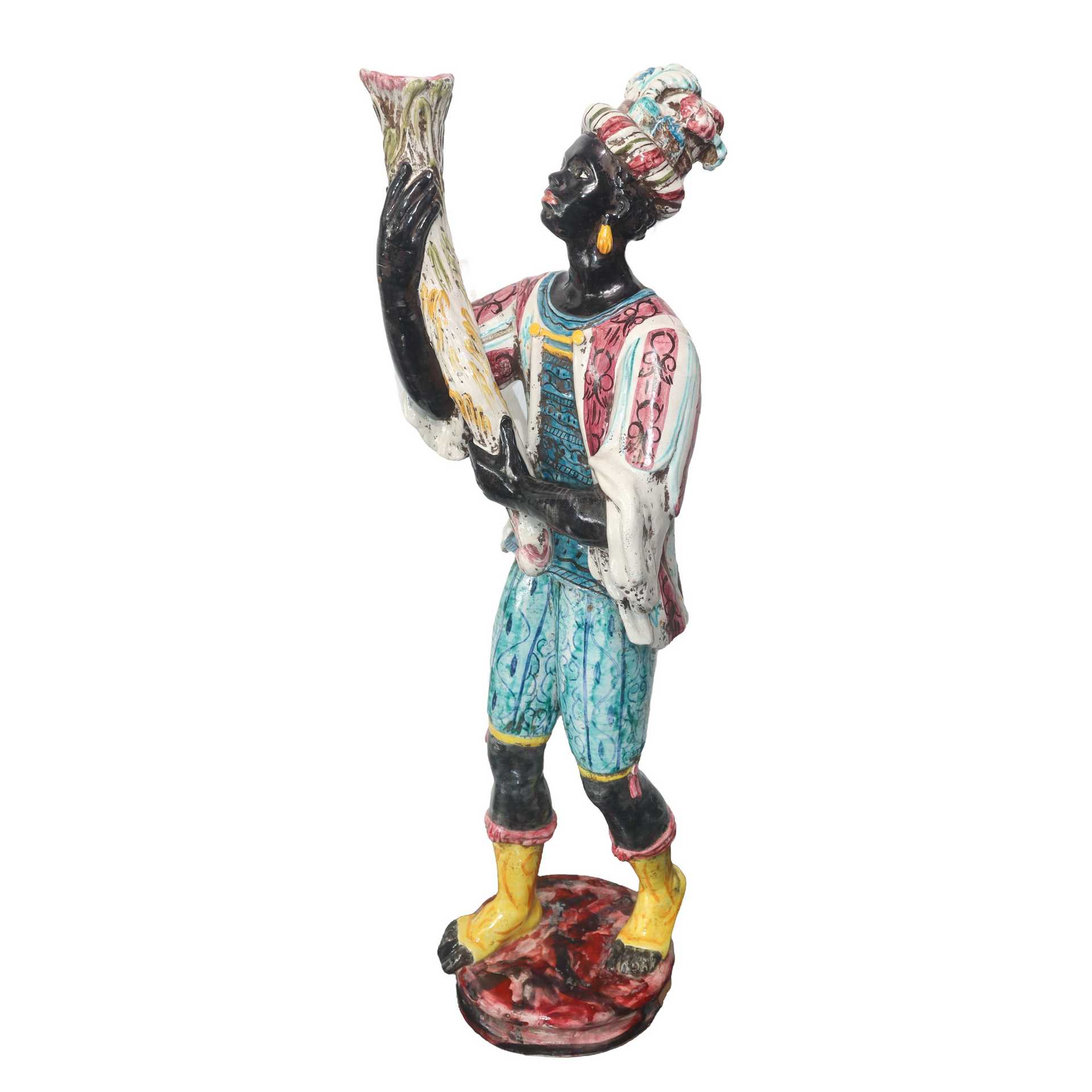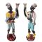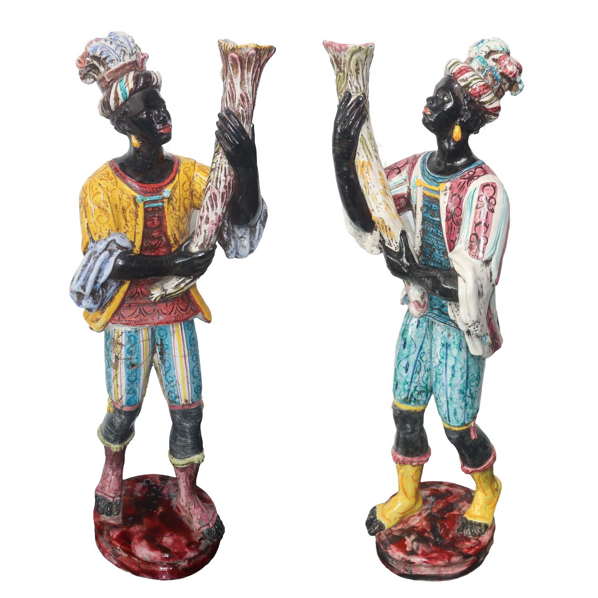 Coppia di sculture in ceramica policroma mori portaceri, 20° secolo