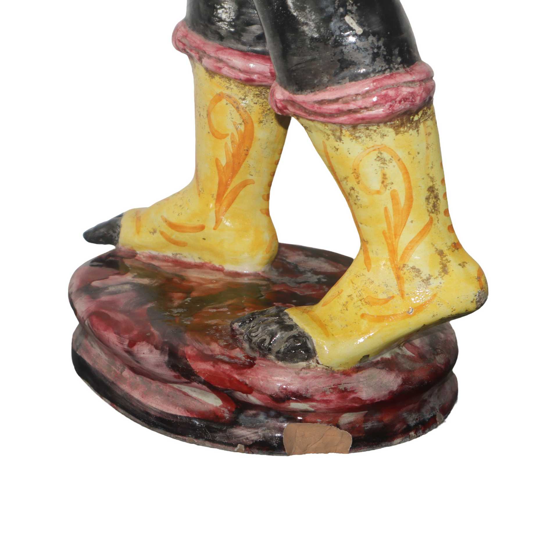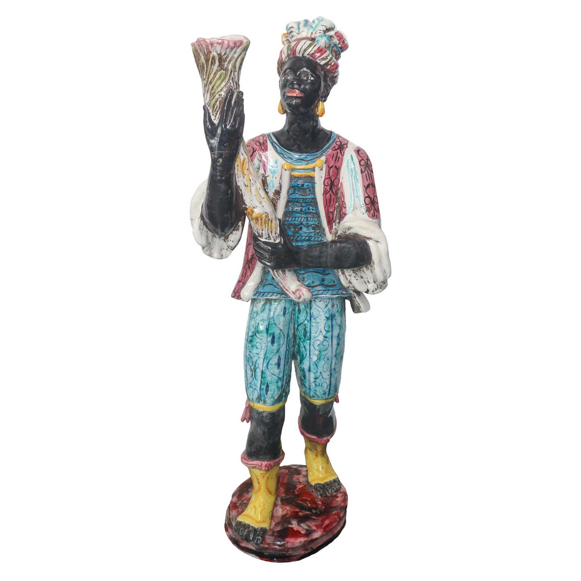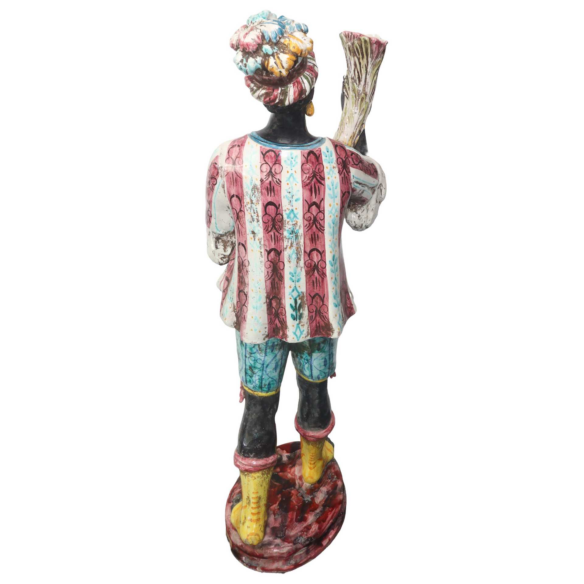 Coppia di sculture in ceramica policroma mori portaceri, 20° secolo
