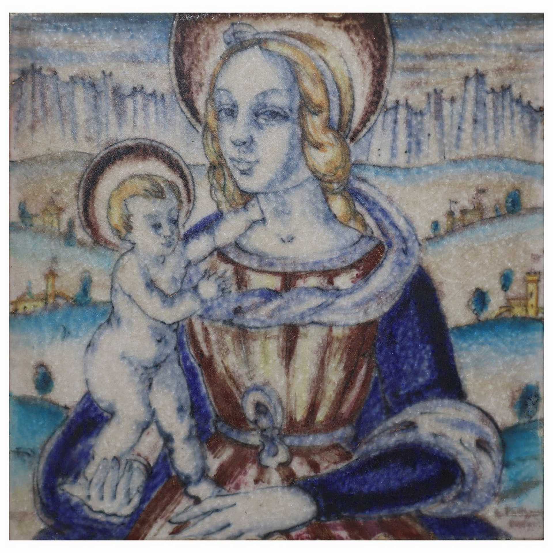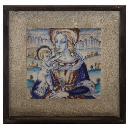 Madonna con bambino, 20° secolo Cm 26 x 26 in cornice 40 x 40 Su marmo