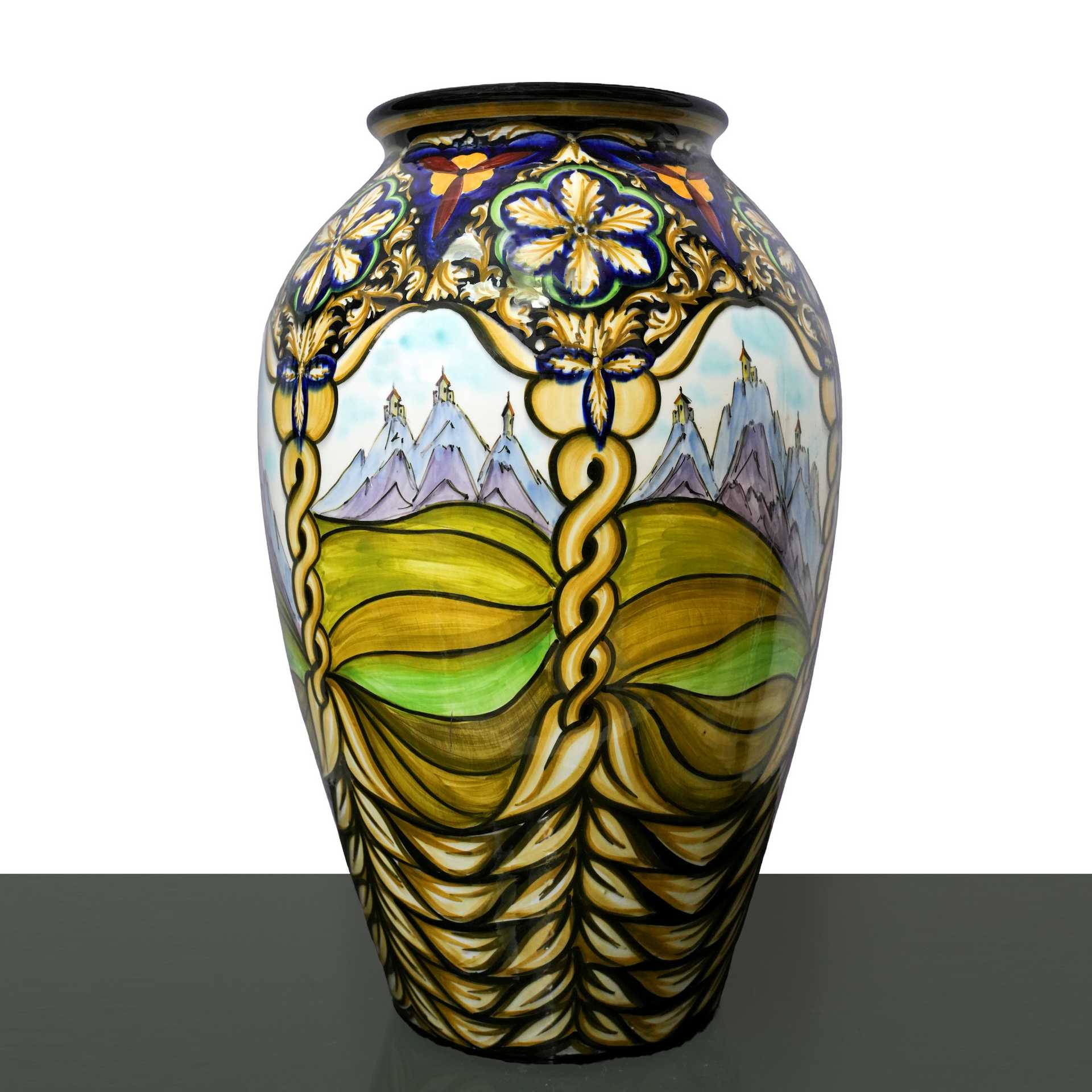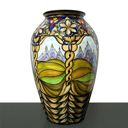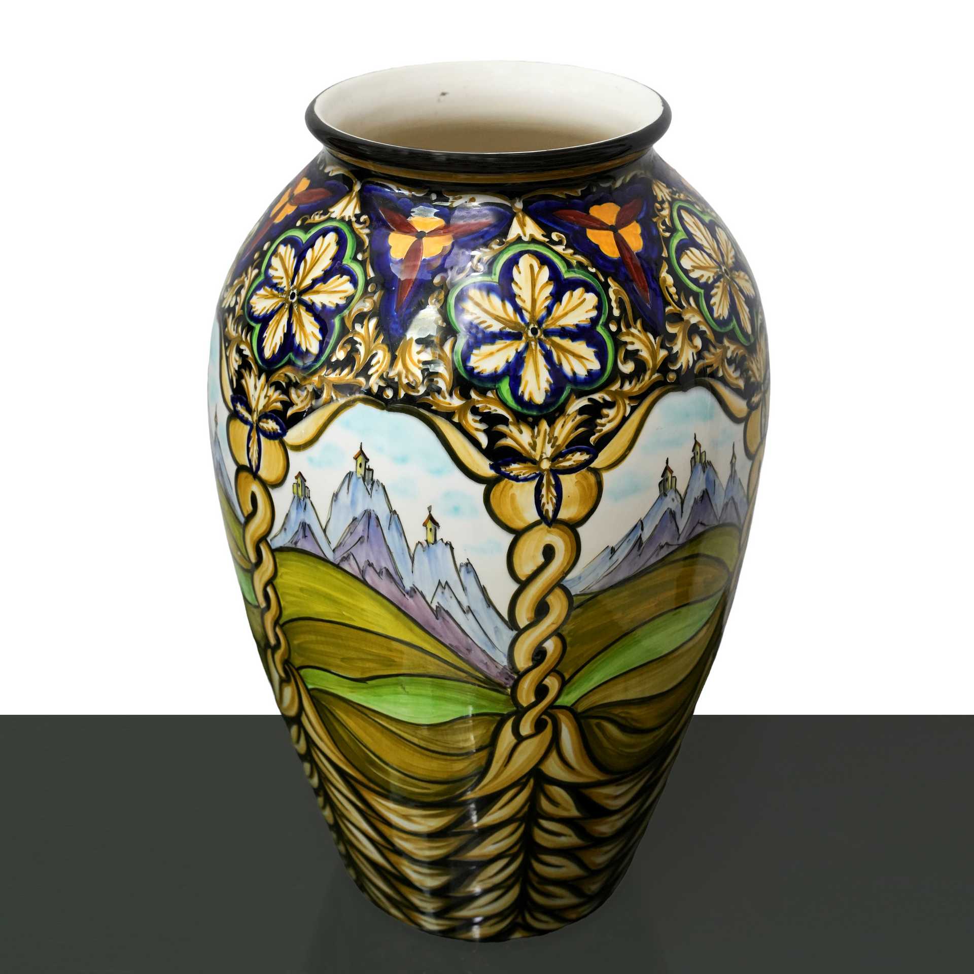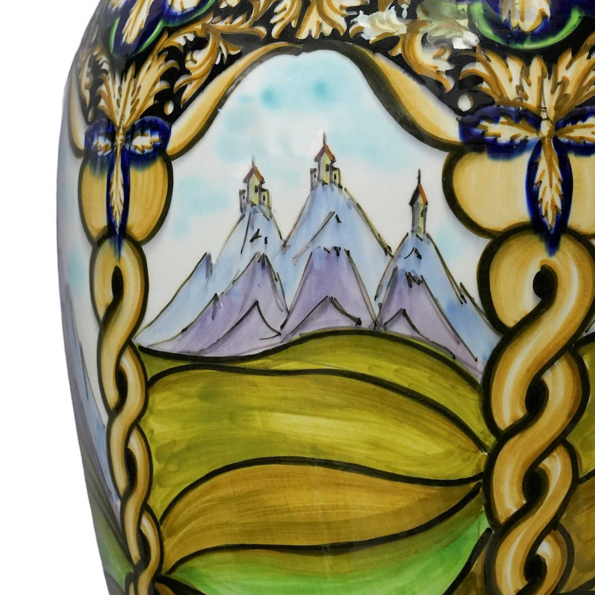 Marmaca San Marino - Vaso decorato con paesaggi e motivi floreali H cm 45 Marchio alla baseMarchio alla base