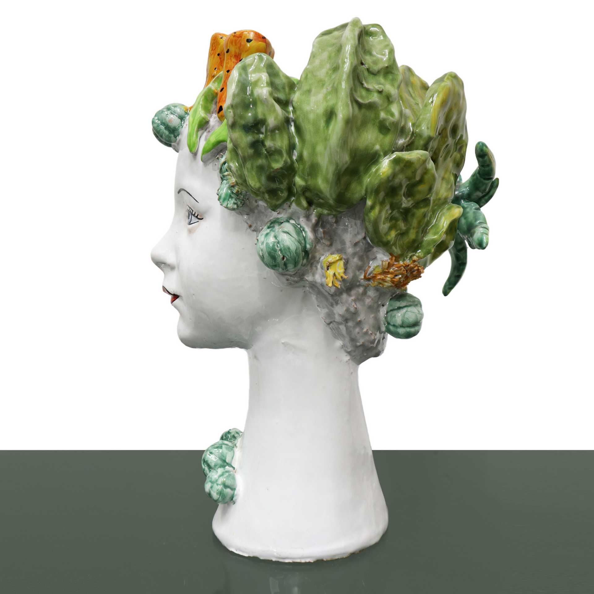 Virginia Casa Hand made in Italy (Toscana) - Testina di donna in maiolica con fichi d'india in testa