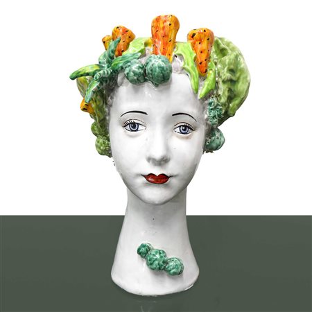 Virginia Casa Hand made in Italy (Toscana) - Testina di donna in maiolica con fichi d'india in testa H cm 31x23 Marchio alla base.Marchio alla base.