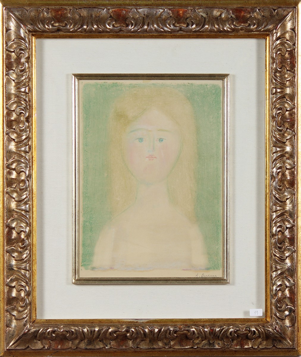 BUENO ANTONIO (1918 - 1985) Figura bionda. 1974. Olio su cartone. Cm 30,00 x 40,00. Firma in basso a destra. Opera archiviata presso l' Archivio fotografico delle opere di Antonio Bueno come da documentazione fotografica allegata all'opera firmata dall'artista e da Giovanbattista Bianco. Pubblicazioni: Catalogo Generale delle opere di Antonio Bueno, II volume, Peg. 135. Bibliografia: F. Menna, Viaggio intorno alle impronte, Ed. Bora, Bologna, 1990. Cornice presente