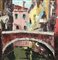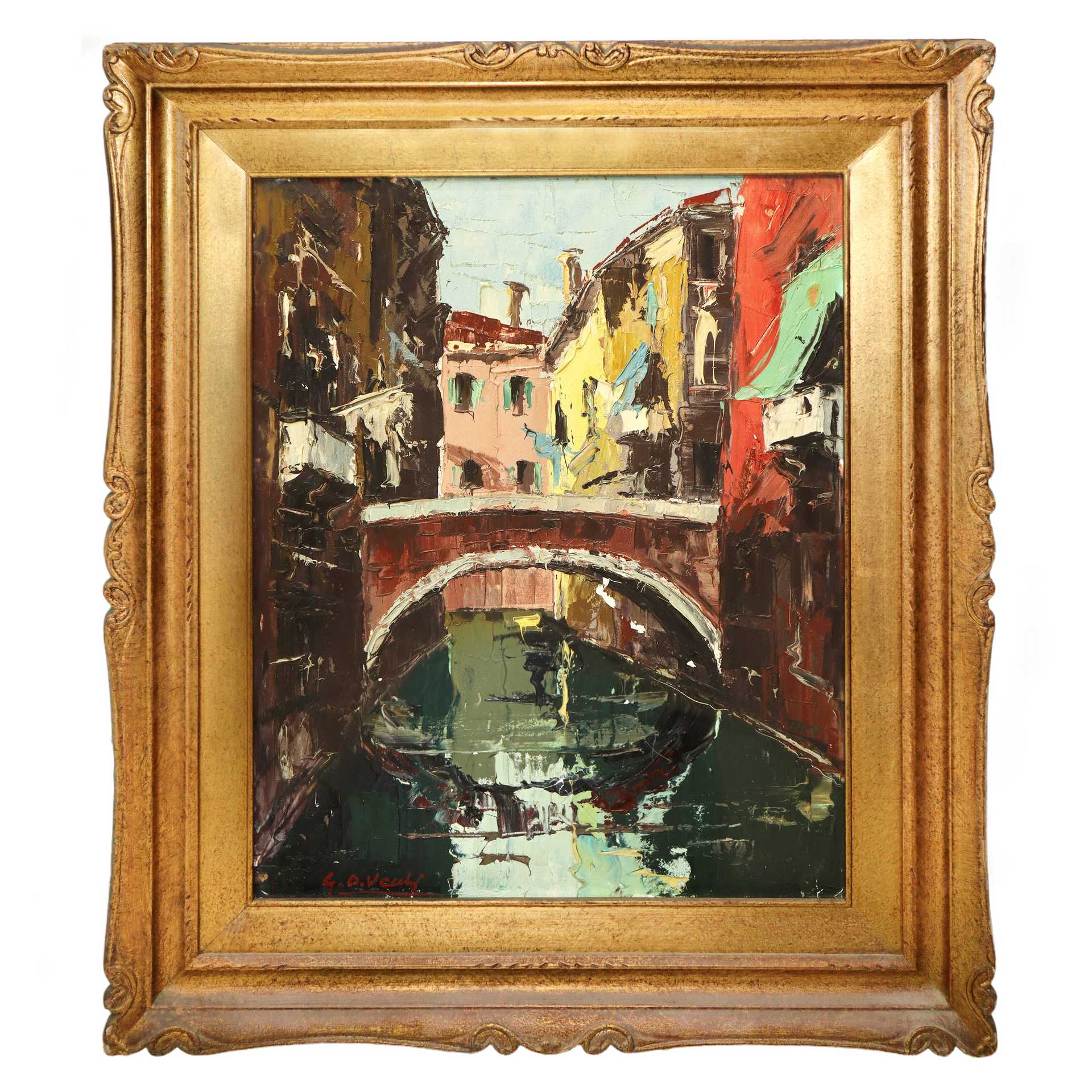 Canale veneziano con ponte cm 50 x 40, in cornice 68 x 58 olio su tela FIrmato G. D. Vacchi