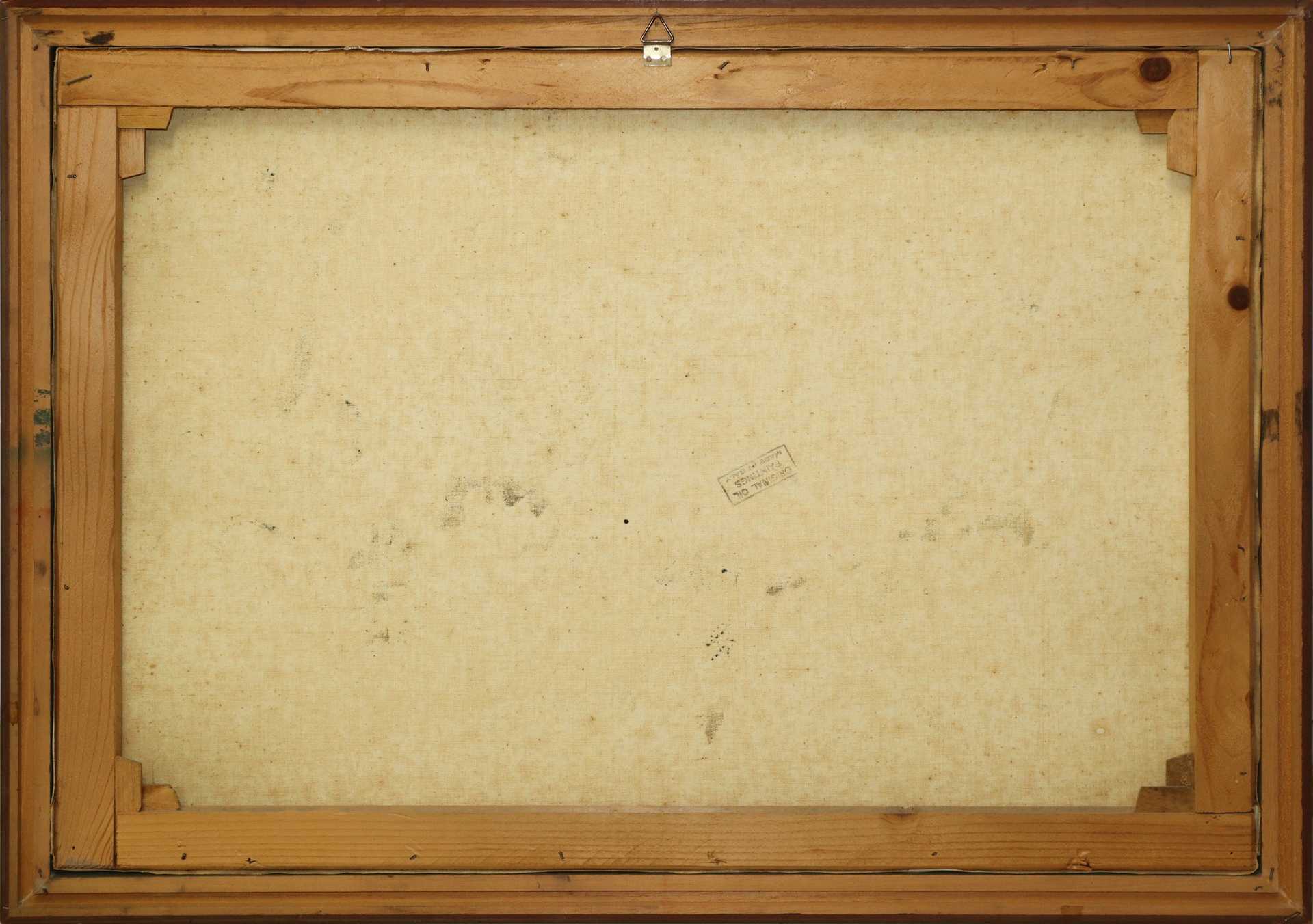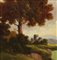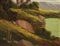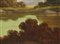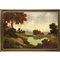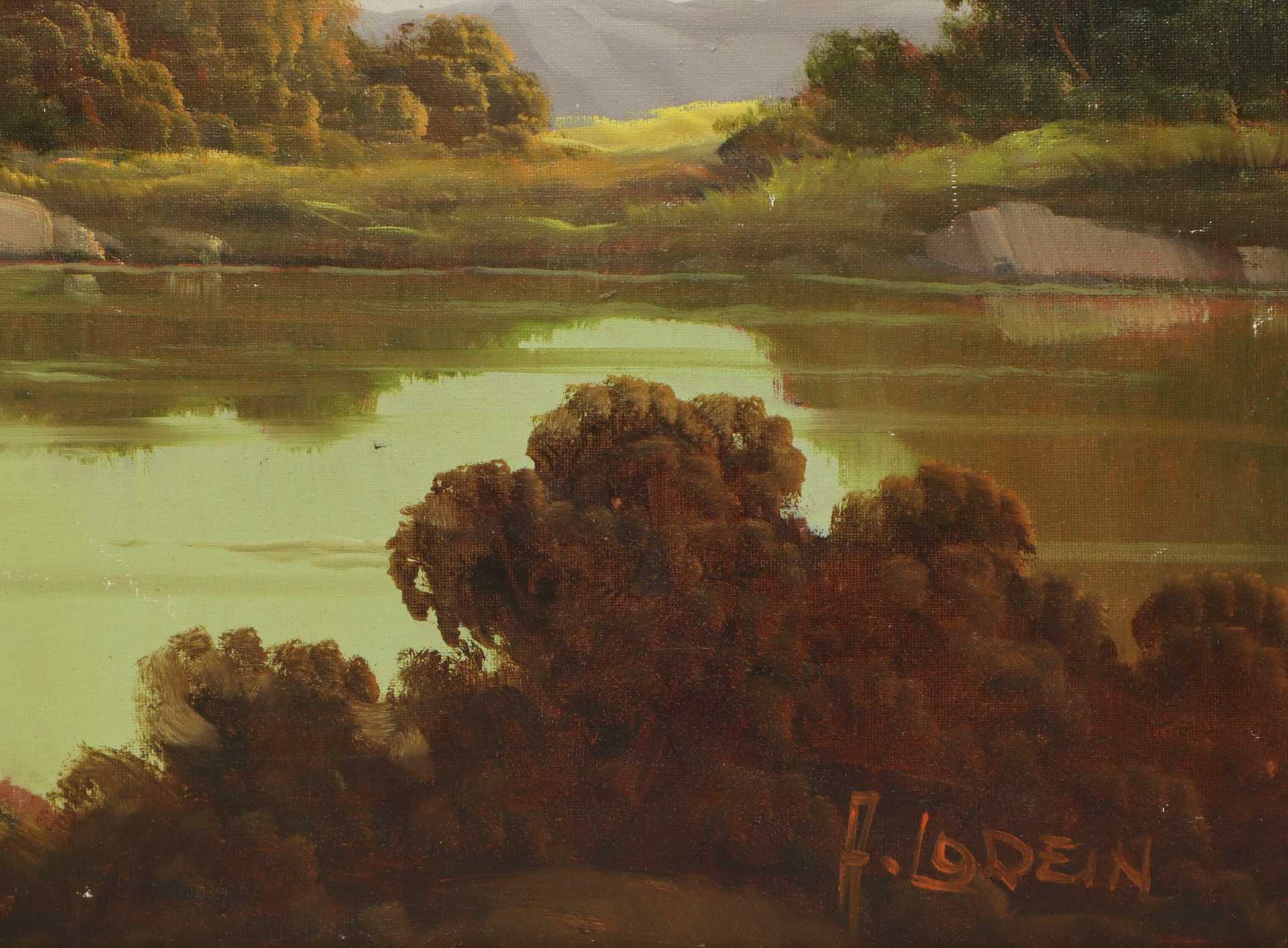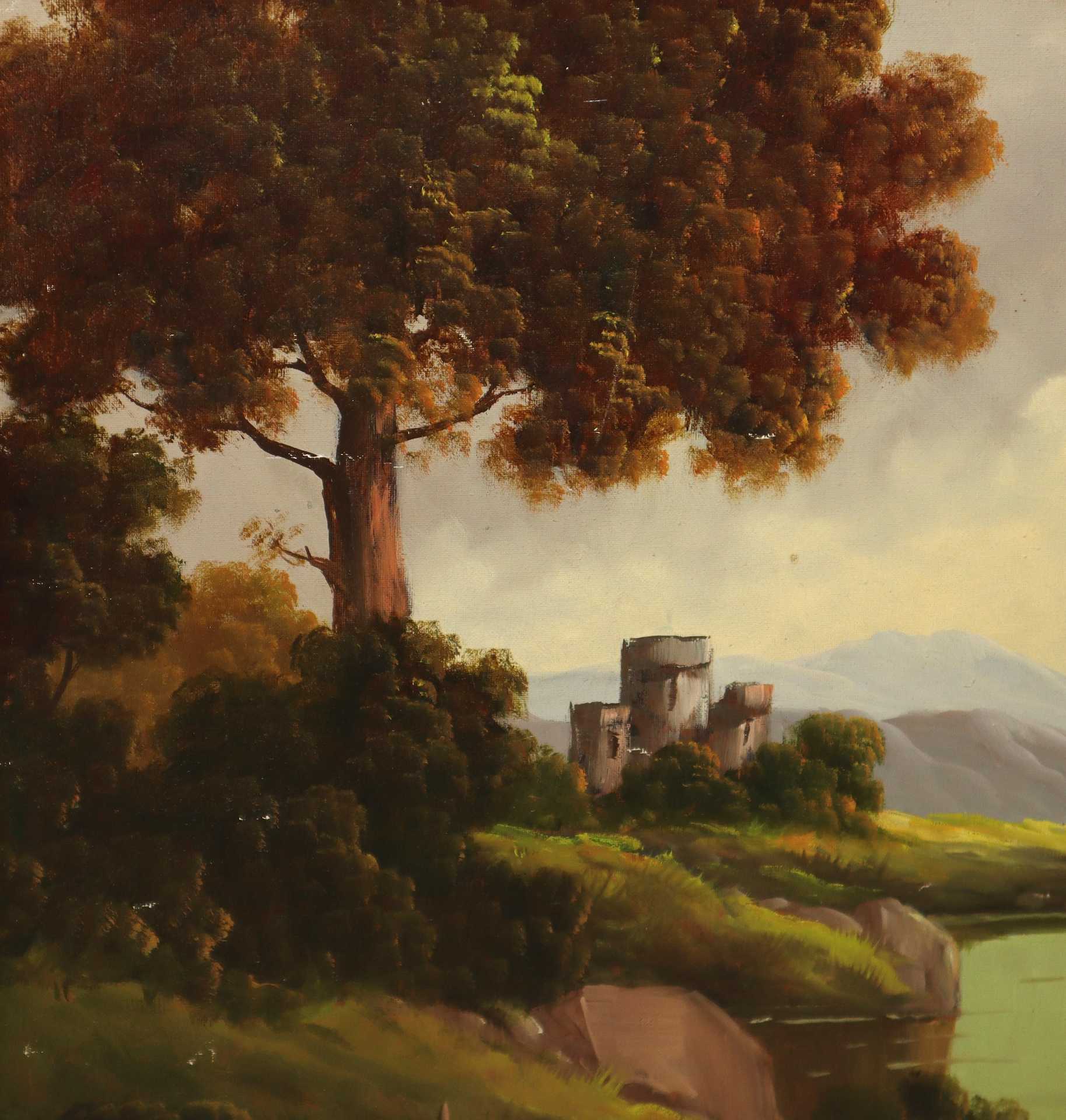 Paesaggio lacustre con alberi e castello arroccato H cm 50x70 - in cornice H cm 56x76 Olio su tela Firmato in basso a destra A. Lorein