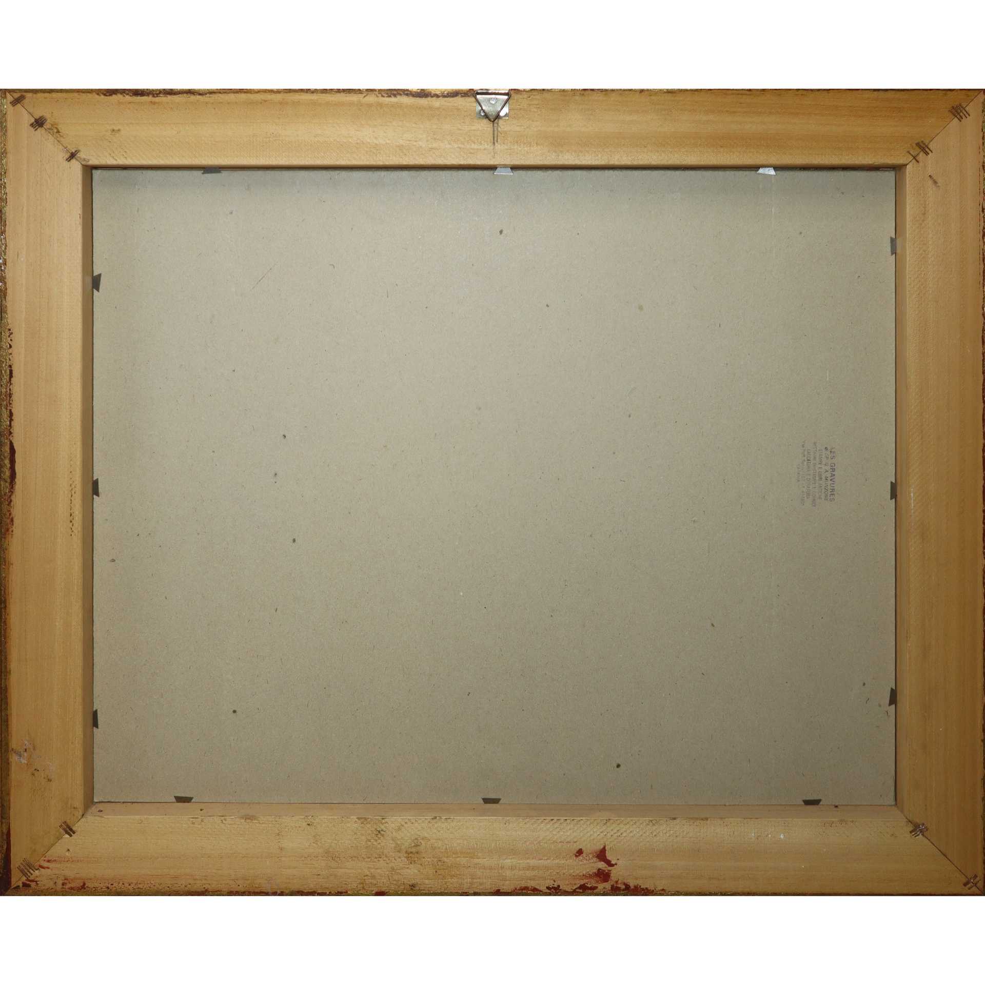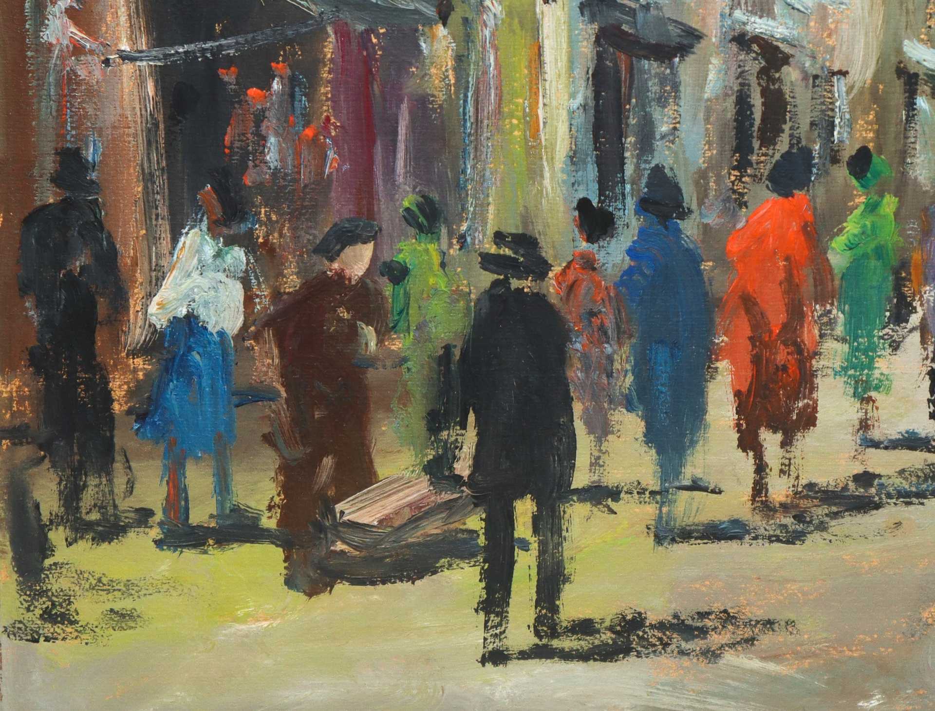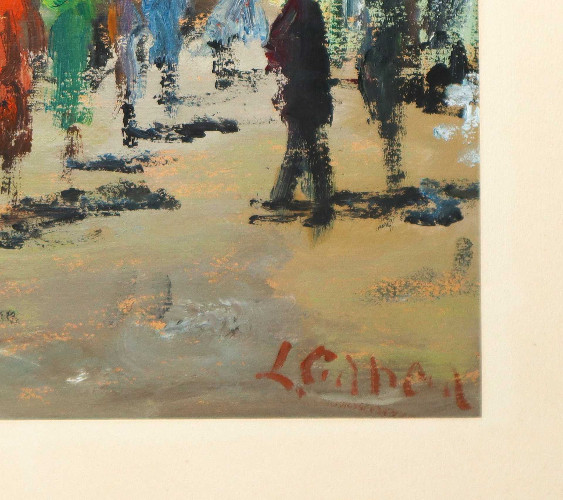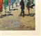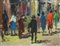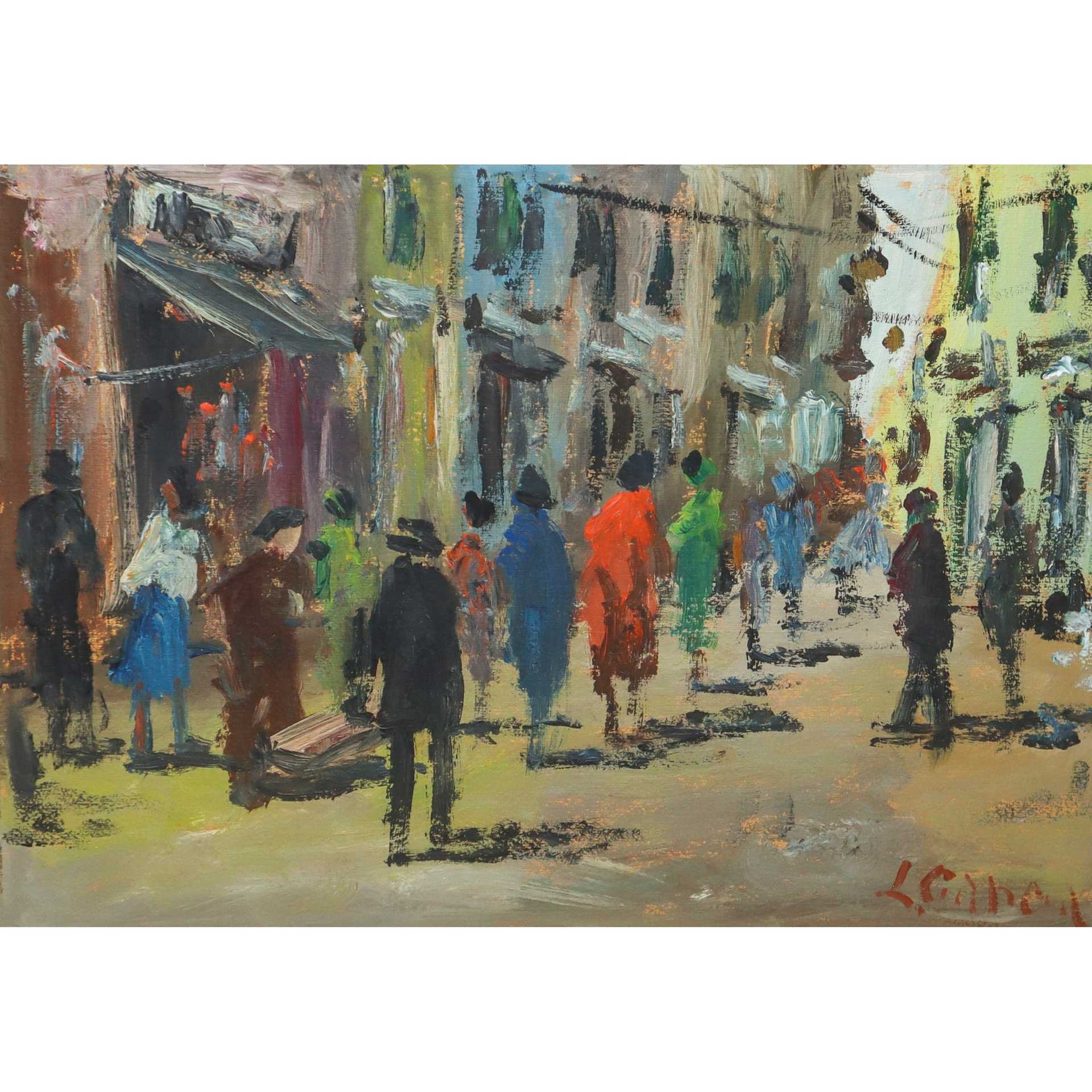 Strada con passanti cm 29X39 in cornice cm 52X62 olio su carta Firmato in basso a destra L. Ganca