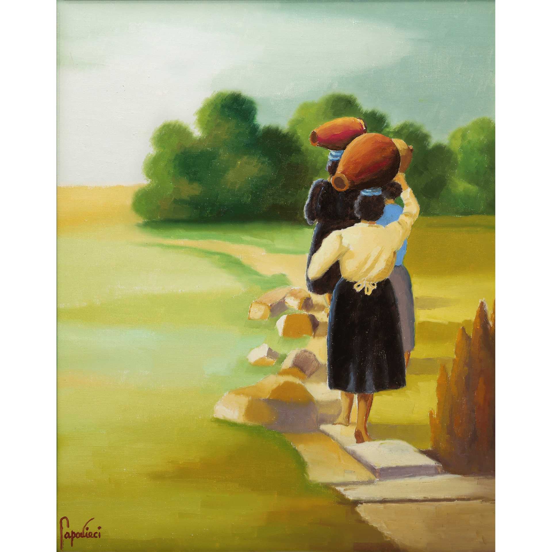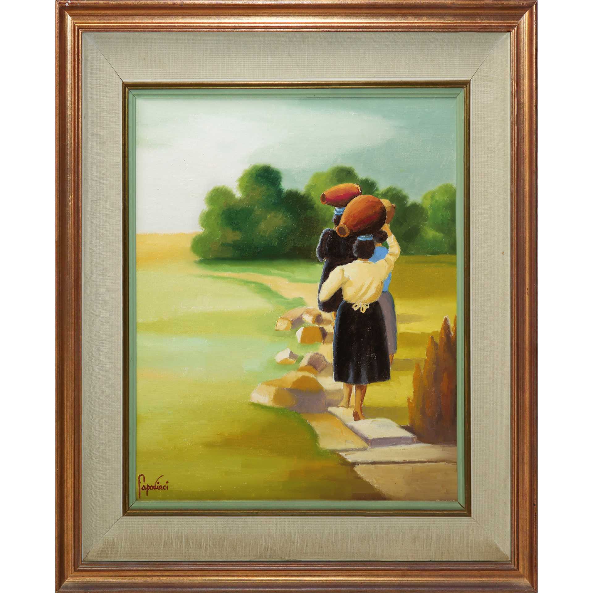 Carlo Capodieci (Siracusa 1899-1973) - Donne con giare sul capo H cm 50x40 - in cornice H cm 66x56 Olio su tela Firmato in basso a sinistra.