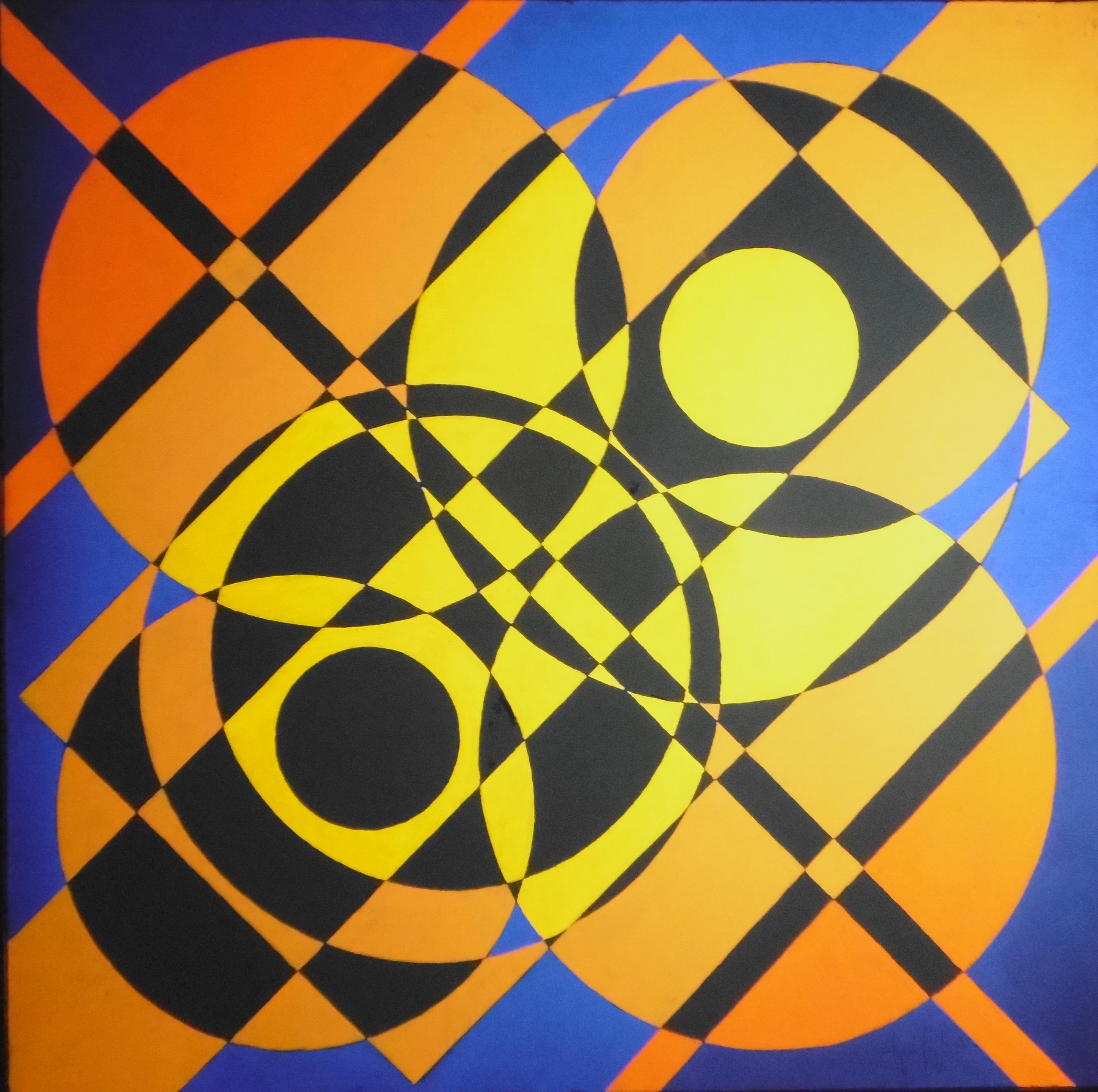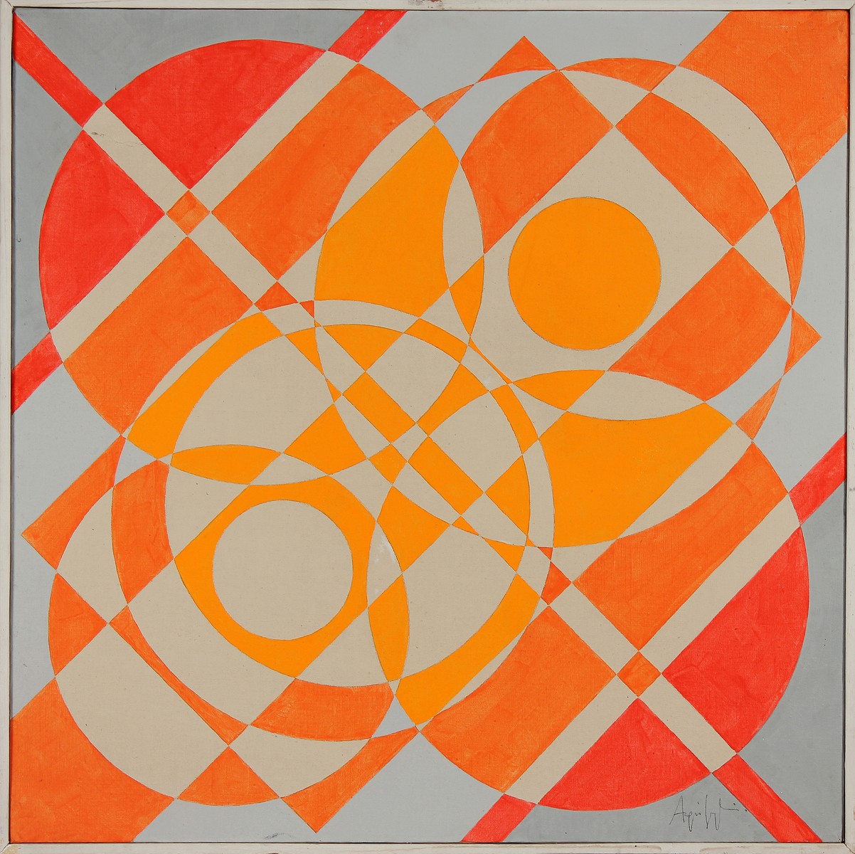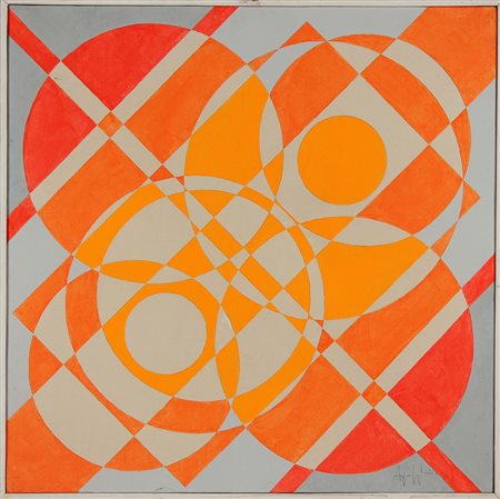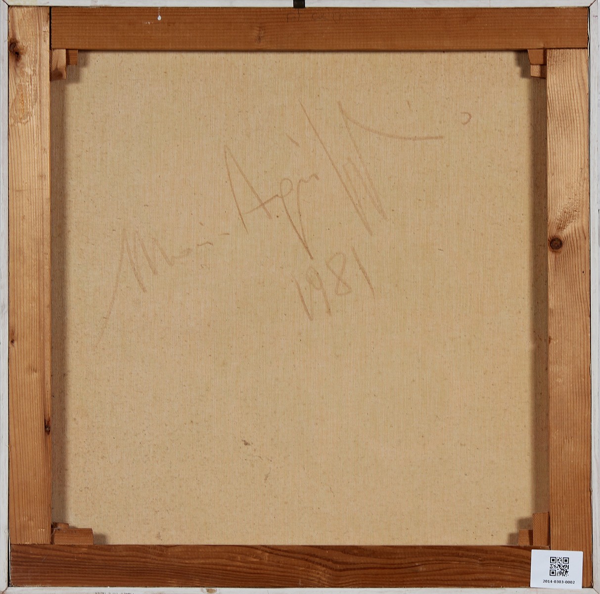 AGRIFOGLIO MARIO (1935 - 2014) Senza titolo. 1981. Tecnica mista su tela. Cm 60,00 x 60,00. Firma in basso a destra. Firma e anno al retro. Opera che risponde alla luce ultravioletta. Cornice presente
