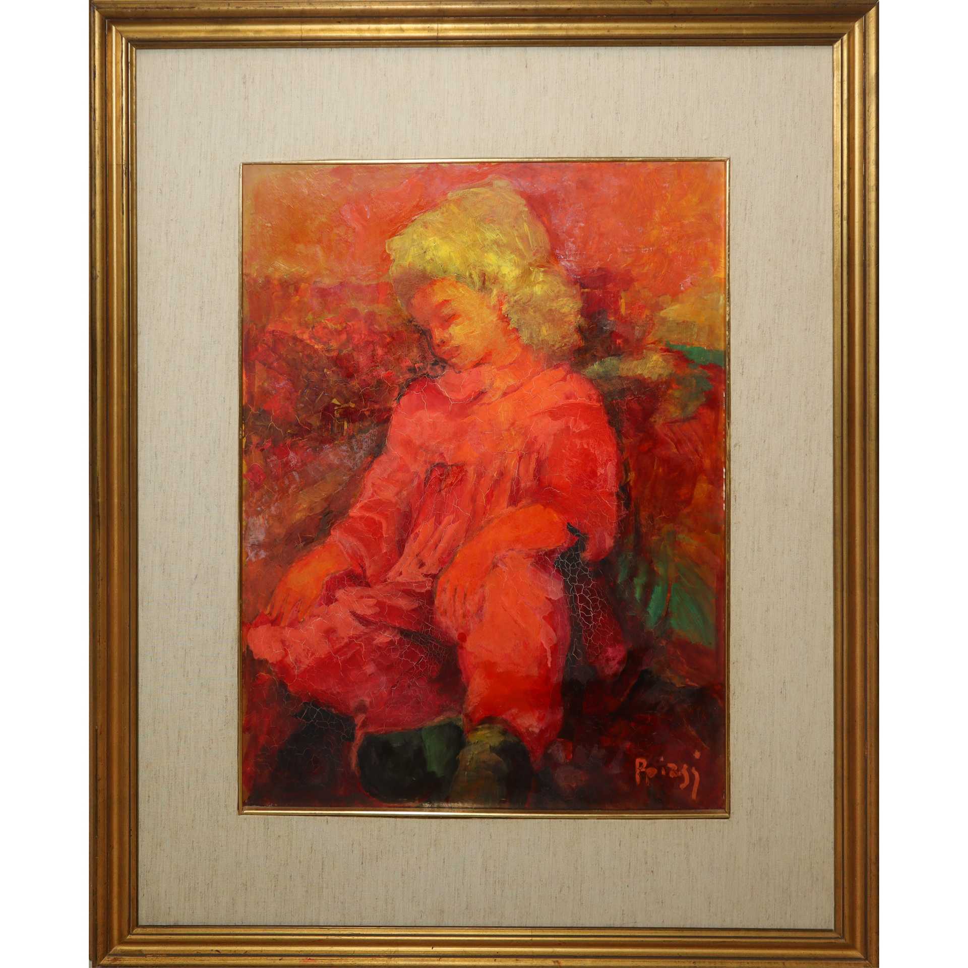 Renato Pizzi (San Severino Marche 1915-Macerata 1996) - Bambino seduto cm 60X50 in cornice 88X80 Olio su tela