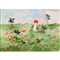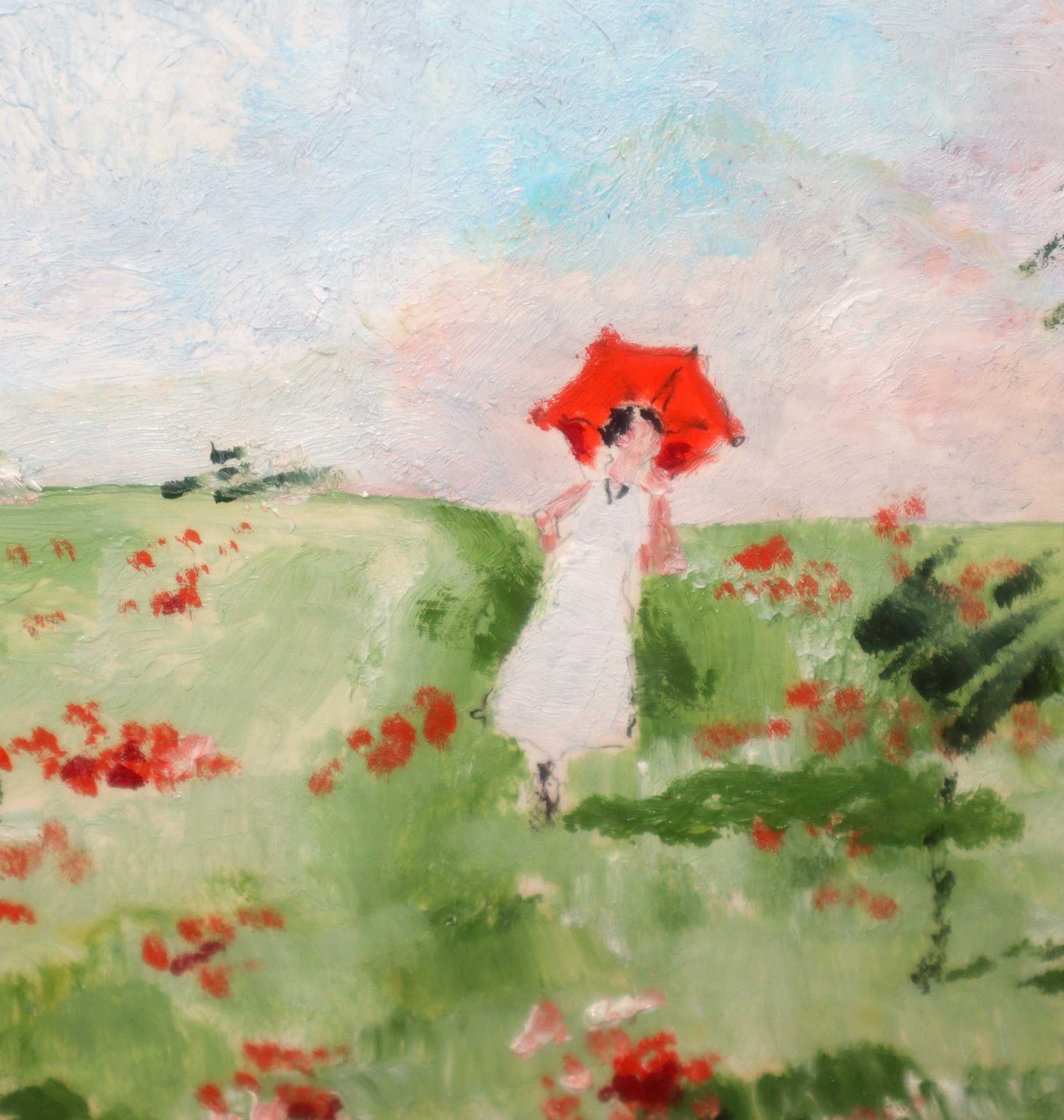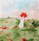 Donna con ombrello in un campo di papaveri cm 17,5x24,5 in cornice cm 36x42 Firmato in basso a destar e datato 29.12.72Firmato in basso a destar e datato 29.12.72
