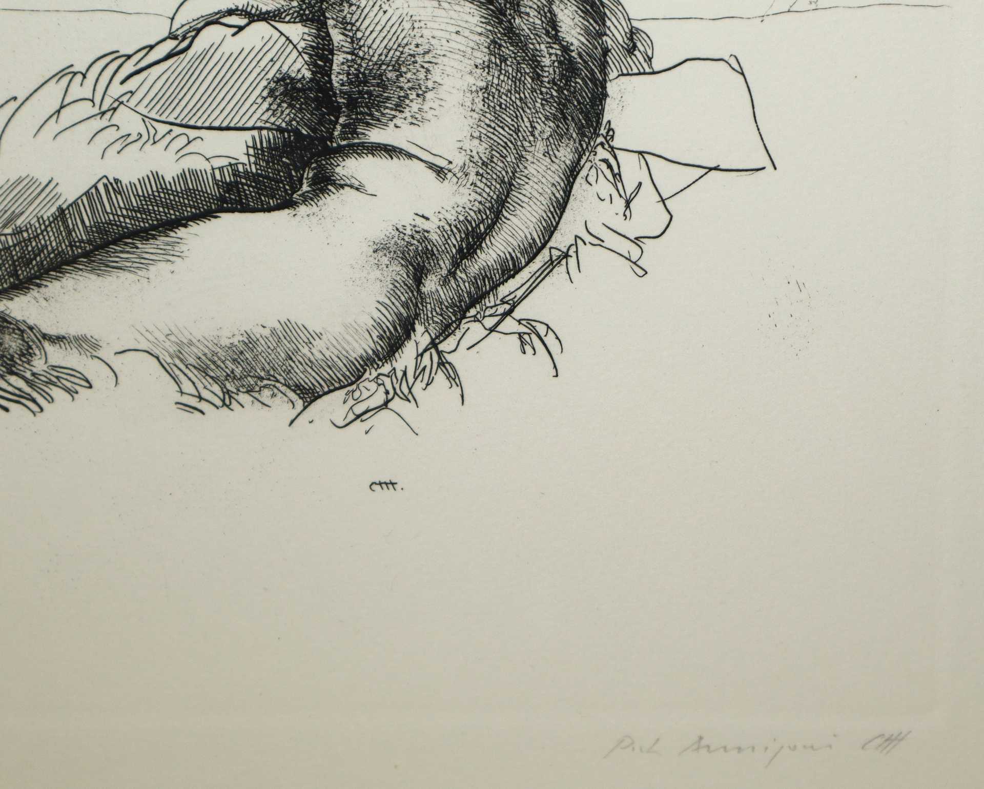 Pietro Annigoni (Milano 1910-Firenze 1988) - Atleta H cm 40x50- in cornice H cm 38,5x53 Aquaforte 43/130. Firmato in basso a destra. Certificato di provenienza ed autenticità N. 25027 di Società Italiana per Edizioni.