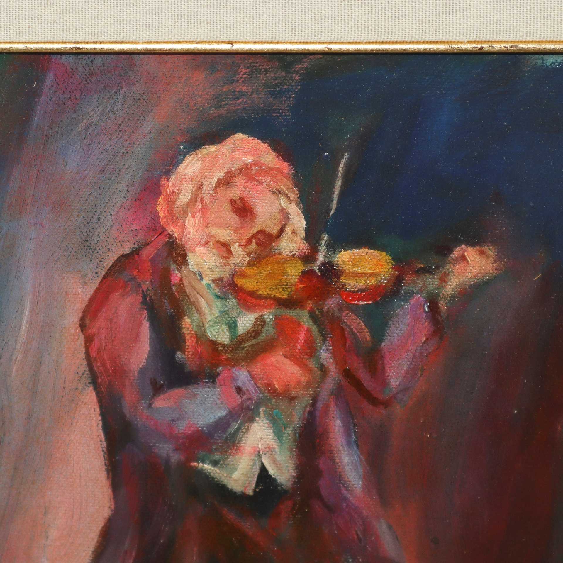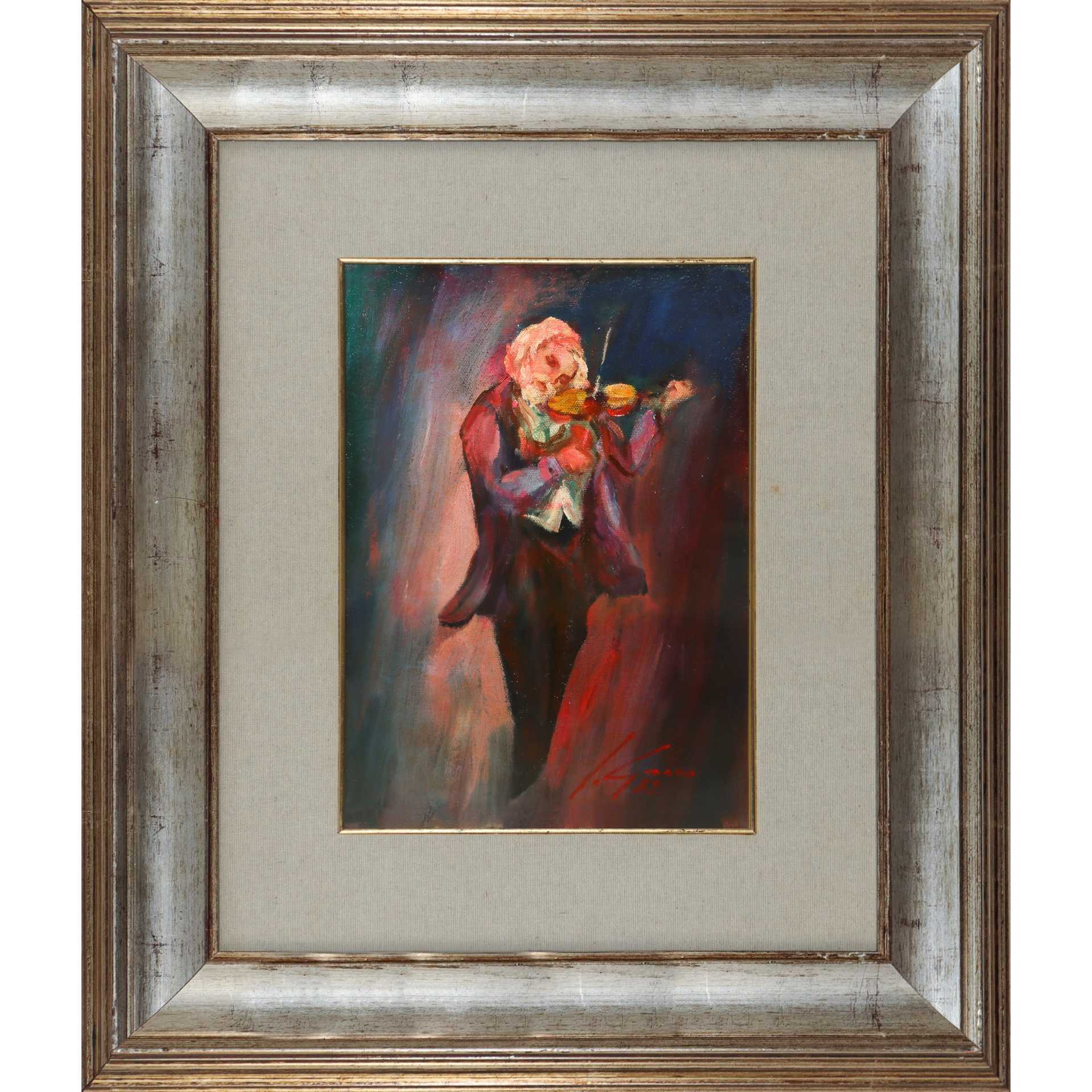 Violinista, 1982 cm 31x21,5 in cornice 60x50 Olio su tavoletta Firmato e datato in basso a destra S. Greco