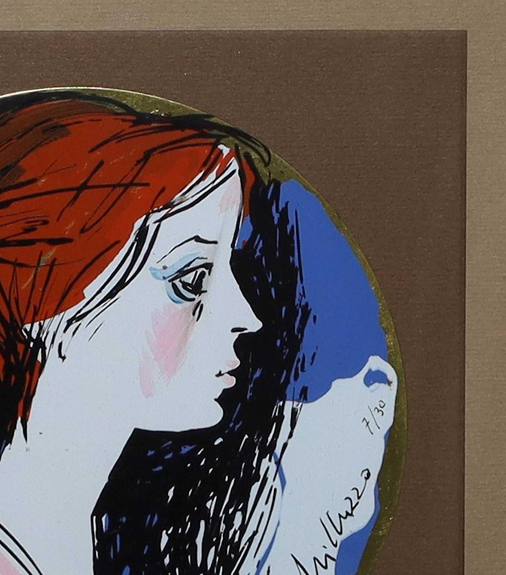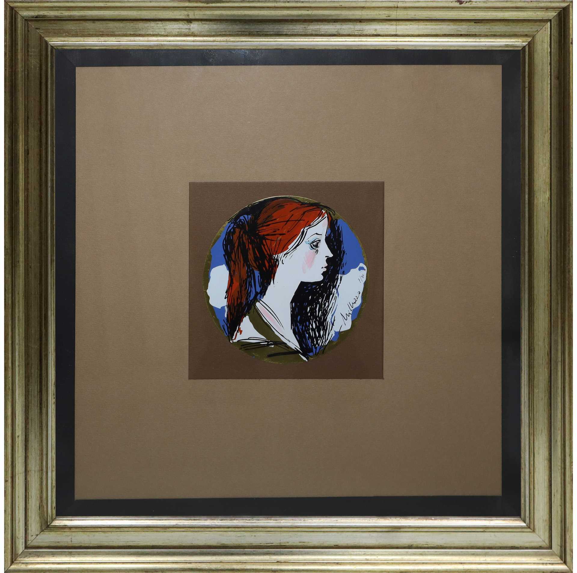 Sebastiano Milluzzo (Catania 1915-Catania 2011) - Tondo, ritratto di donna Diamtro cm 12, in cornice cm 41x41 Smalto su rame Firmato in basso e numerato 7/30