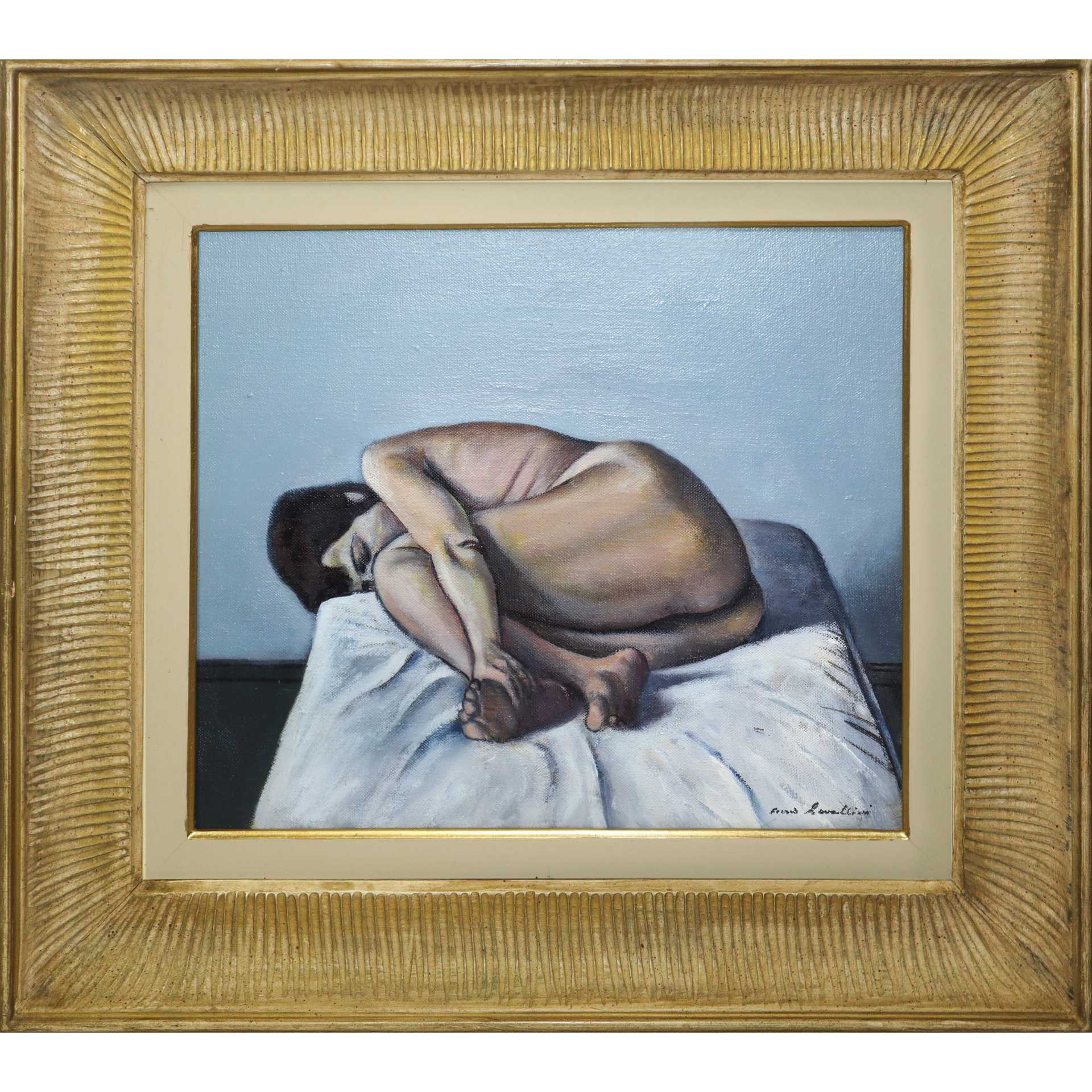 Furio Cavallini (Piombino 10/08/1929-Cecina 02/06/2012) - Nudo di donna accovacciato cm 35x40 in cornice cm 54x59 Firmato n basso a destraFirmato n basso a destra