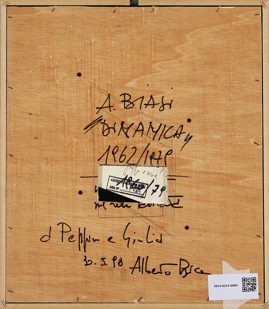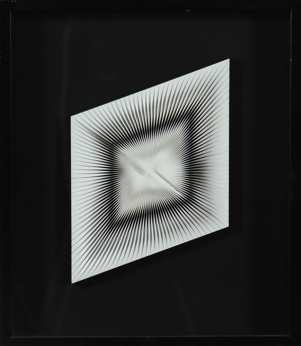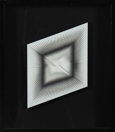 BIASI ALBERTO (n. 1937) Dinamica. Tecnica mista su tavola. Cm 20,00 x 28,00. 1960/79. Dedica, firma e anno al retro. Opera archiviata presso l'archivio Alberto Biasi come da documentazione fotografica allegata all'opera riportante il relativo numero d'inventario. Cornice presente