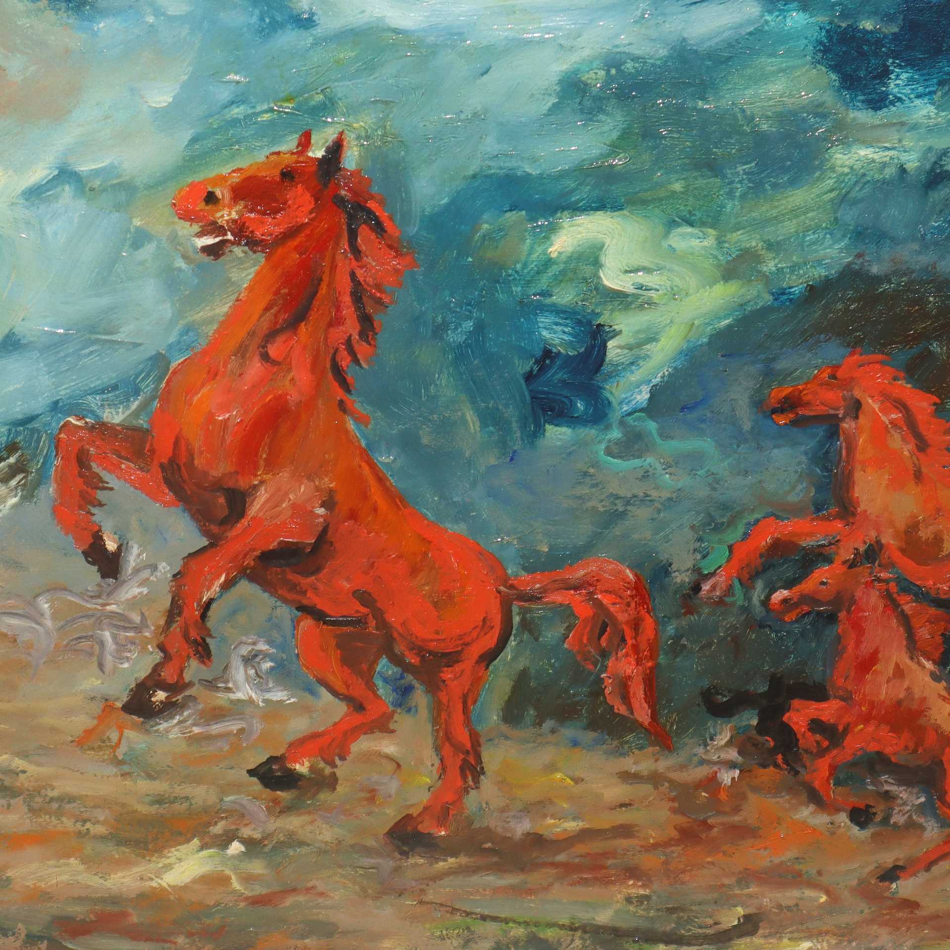 Giorgio Bonelli (1941-1986) - Cavalli in corsa H cm 52x66 - in cornice H cm 67x82 Olio su masonite Firmato in basso a destra