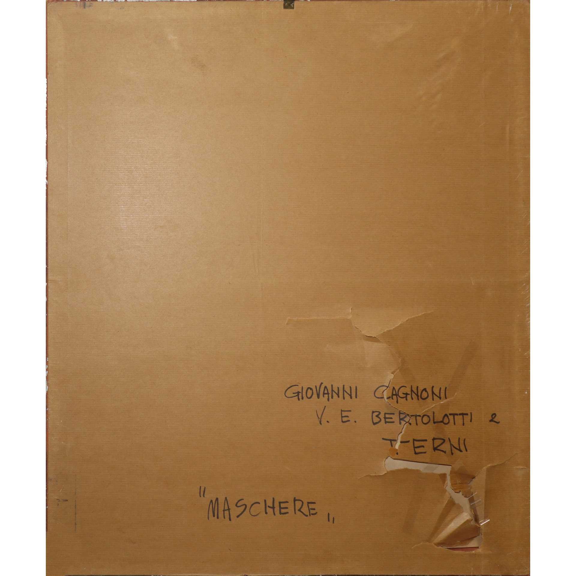 Giovanni Cagnoni (Terni 1931) - Maschere cm 39X29, in cornice 66X56 Olio su compensato