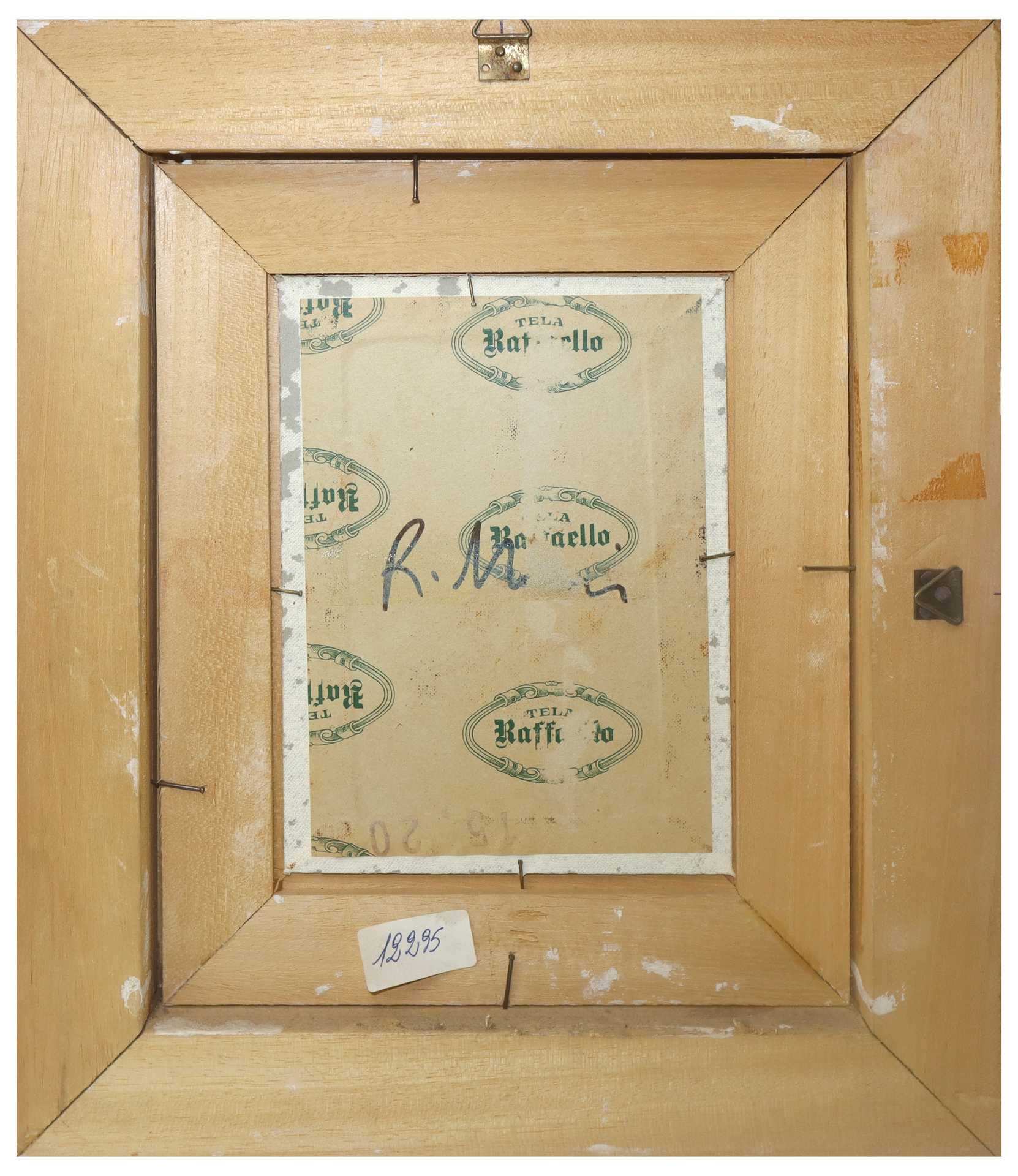 Roberto Masi (Firenze 1940-Firenze 2011) - Uomo che pesca cm 15x20 , in cornice 37x32 Olio su cartone telato Firmato in basso a sinistra e sul retro. N. Arch.12295
