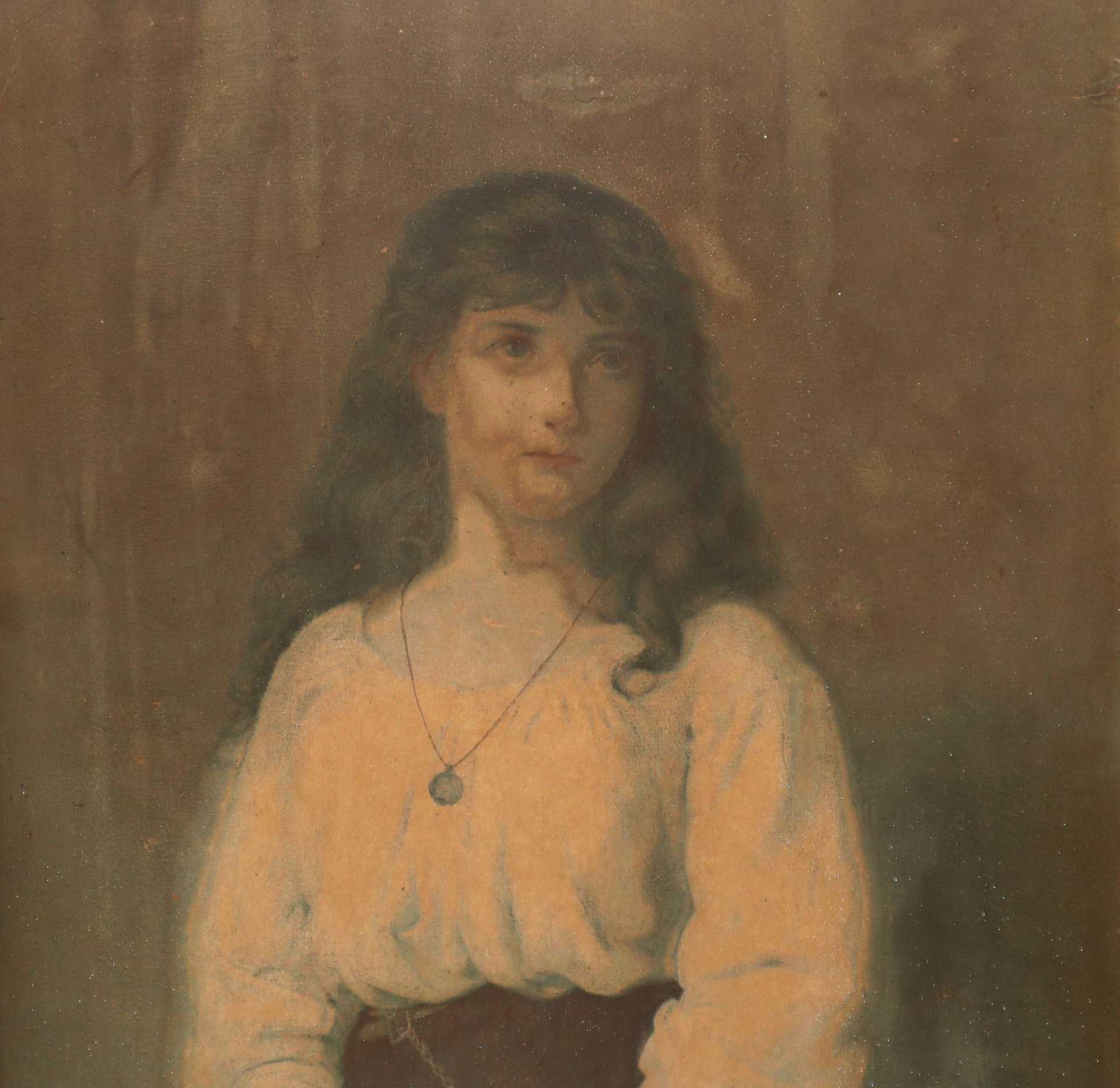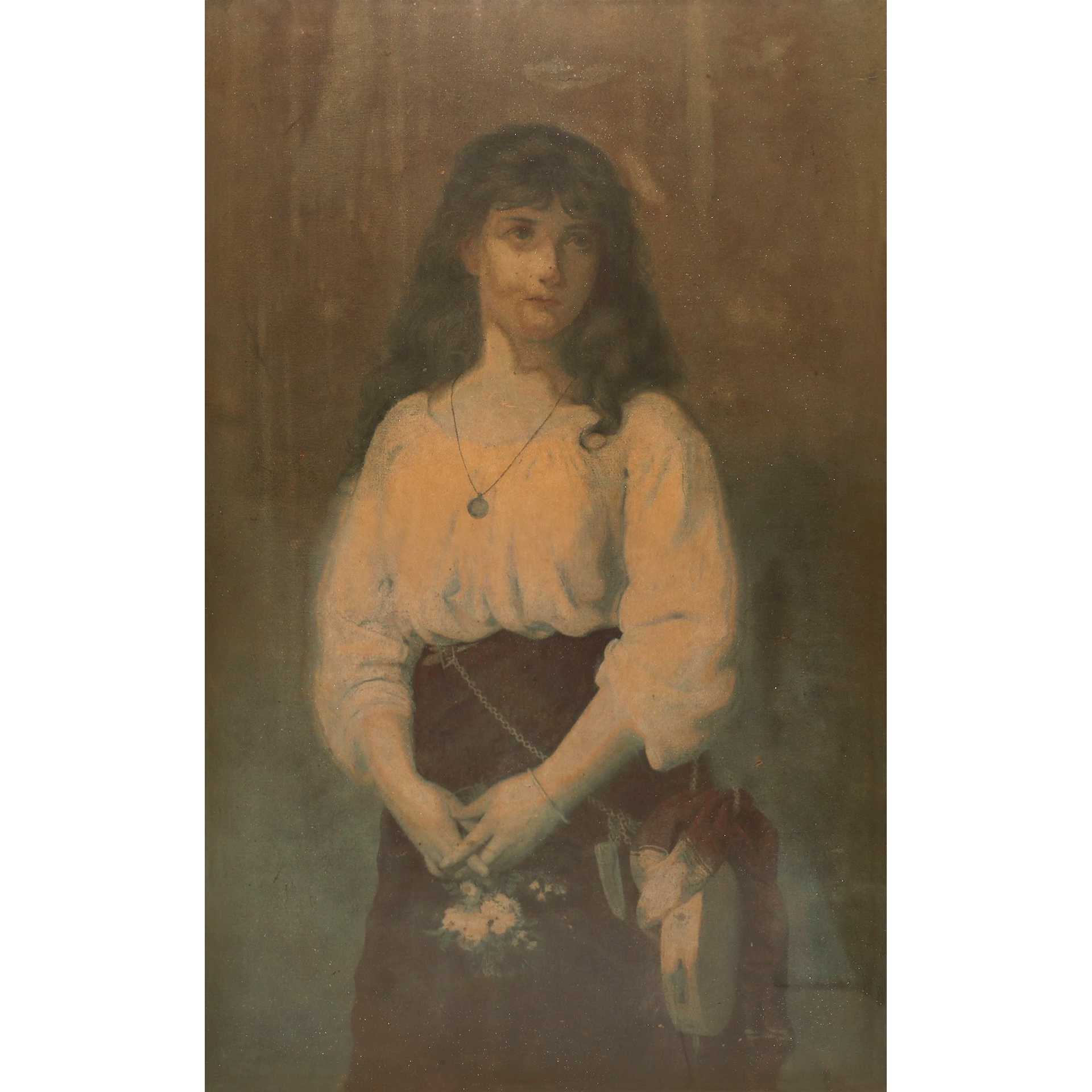 Donna con mazzo di fiori H cm 66x46 - in cornice H cm 96x70 Olio su cartone