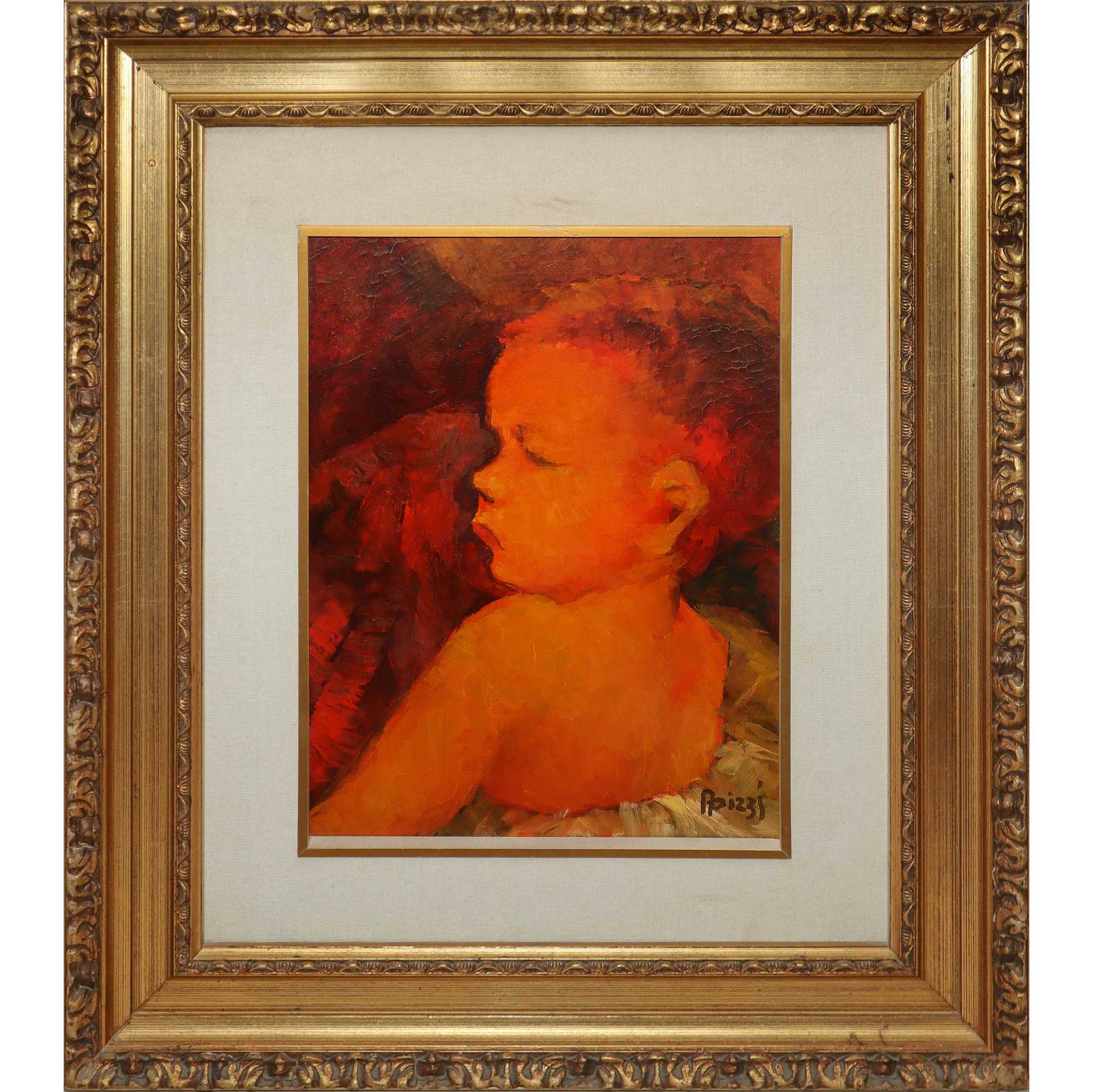 Renato Pizzi (San Severino Marche 1915-Macerata 1996) - Ritratto di bimbo cm 40X30, in cornice 67X57 Olio su tela Firmato in basso a destra