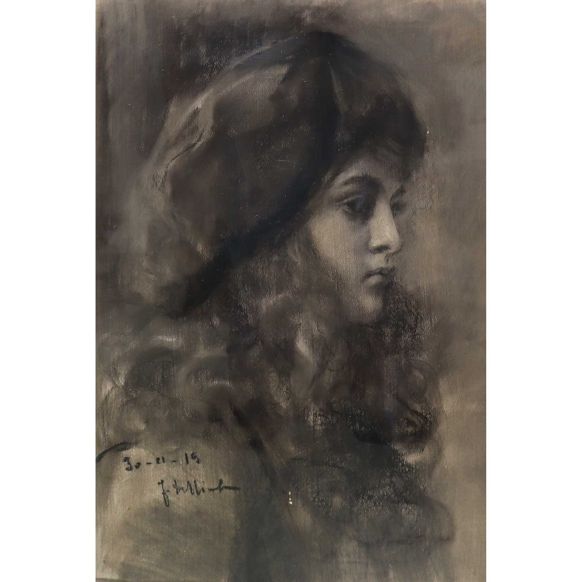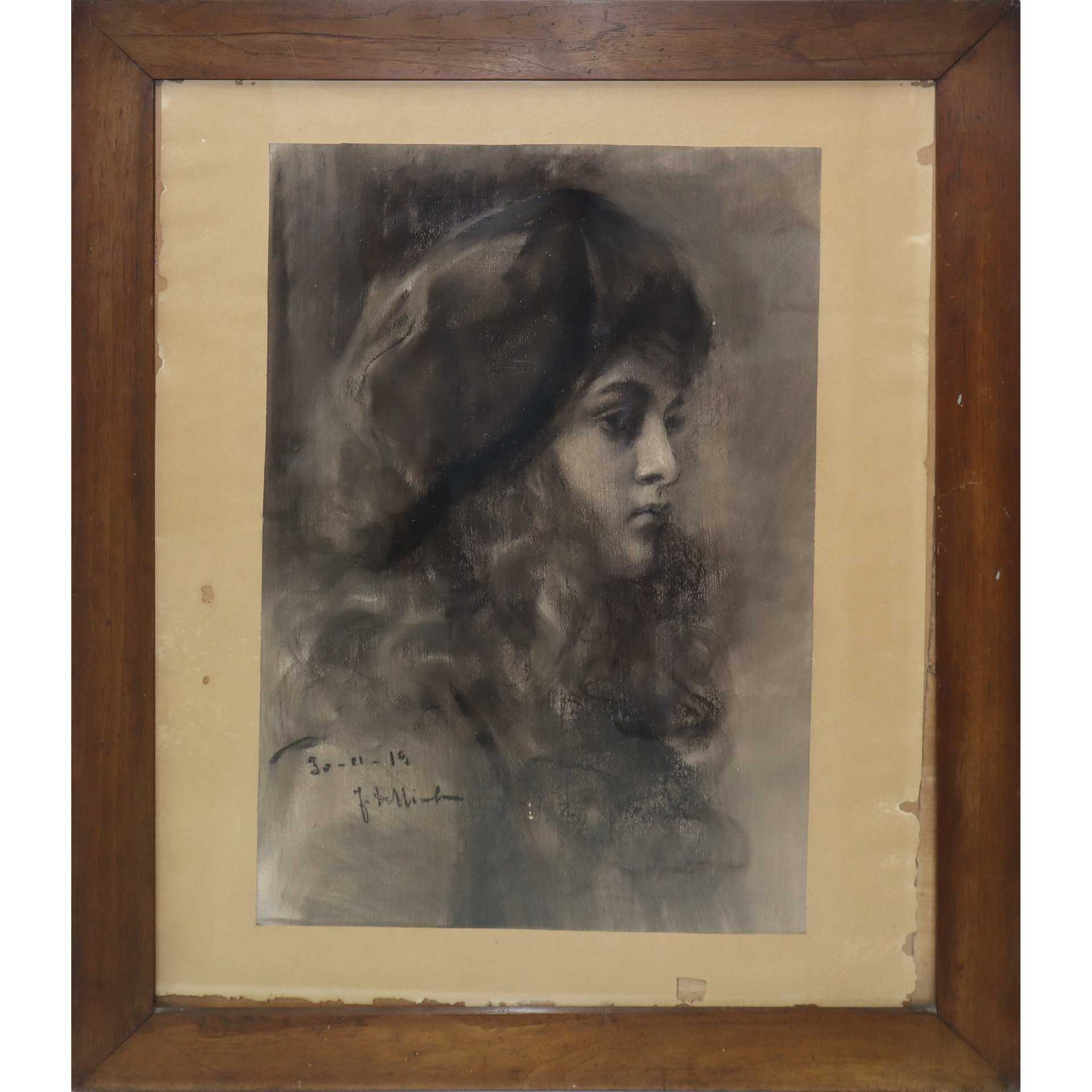 Ritratto di ragazza con basco, 1919 cm 50x34 in cornice cm 69x58 Pastello su carta Firmato in basso a sinistra e datato.