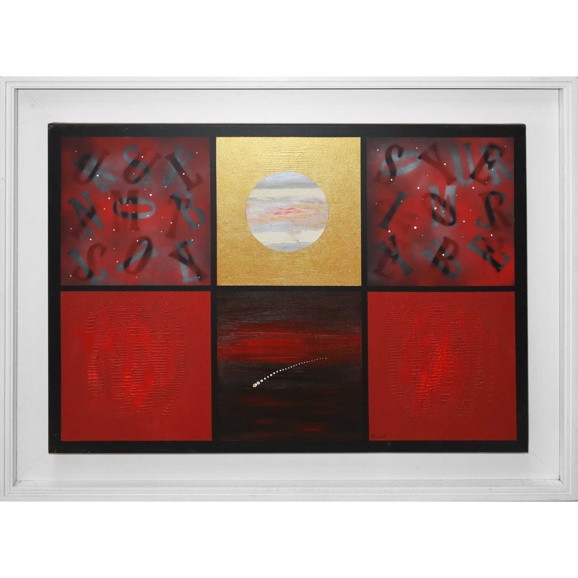 Sergio Gioielli (Cosenza 1956) - Space cm 50x70 in cornice cm 65x85 Tecnica mista su tela Firmato sul fronte in basso a destra. Firmato e titolato al retro.