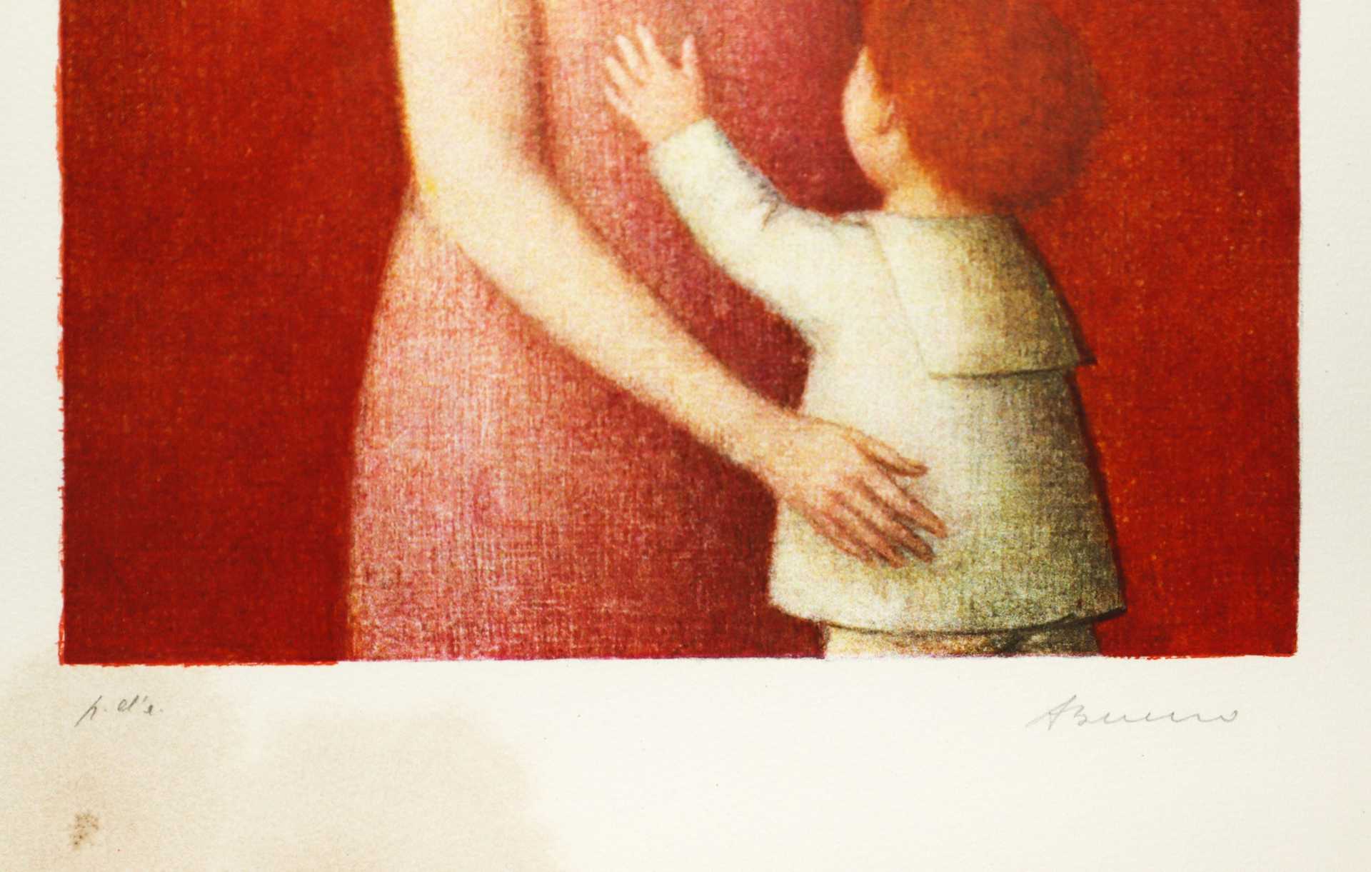 Antonio Bueno (berlino 1918-Firenze 1984) - Mamma con bambino, 5/4/1985 h cm 70X50 in cornice h cm 76X56 Litografia a colori