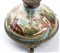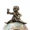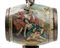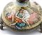 Cassa in metallo dorato con base e corpo smaltati in policromia con scene mitologiche collegate da una gru fusa e dorata. Cassa superiore a forma di botte cimata da un putto; quadrante dipinta in policromia con numeri romani, sfere nere e foro di carica alle ore 11. Rimessa delle ore e carica a chiave.