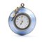 Cassa di forma circolare in argento 916/1000 con smalti guilloché nei toni del azzurro, quadrante in smalto bianco con numeri arabi e sfere dorate.