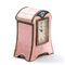 Cassa sagomata in argento 935/1000 e smalti guilloché nei toni del rosa con decori floreali policromi, quadrante dorato con numeri arabi e sfere nere riportante le iscrizioni "Eterna - 8 Days - Fab Suisse".