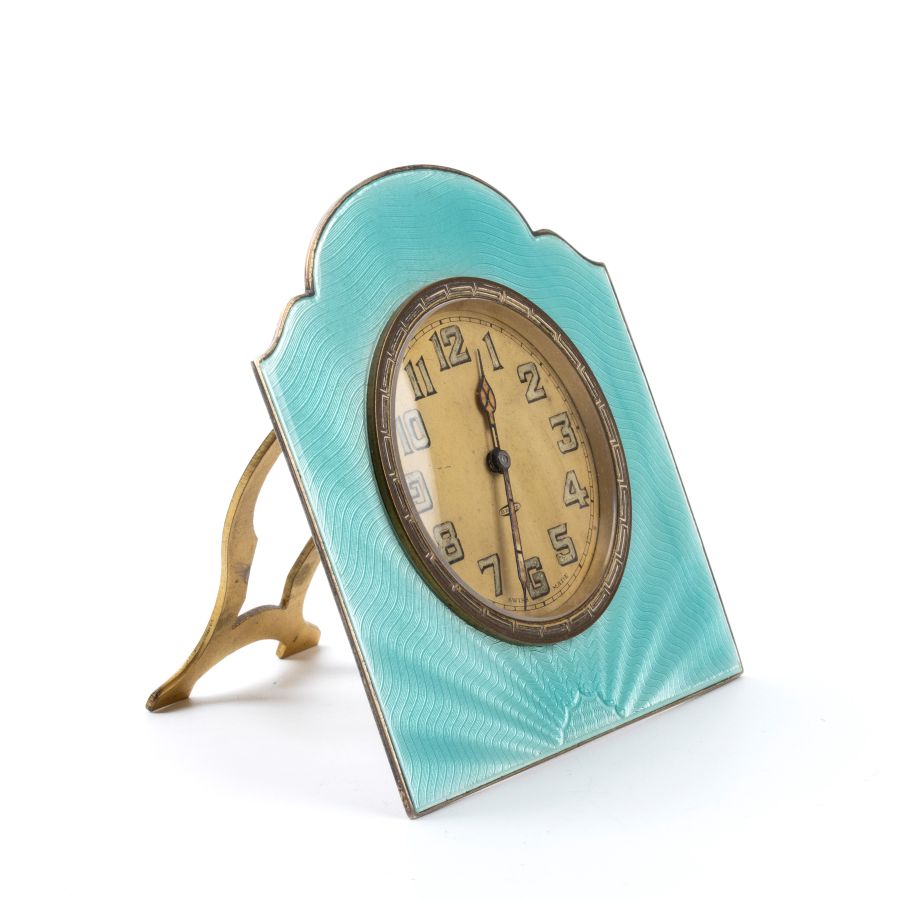 Beddoes & Co: Orologio da tavolo Art Déco in argento e smalti. Birmingham, 1929