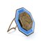 Cassa ottagonale in argento 925/1000 e smalti guilloché nei toni dell'azzurro, quadrante dorato con numeri arabi e sfere nere riportante le iscrizioni "8 DAYS - SWISS MADE".