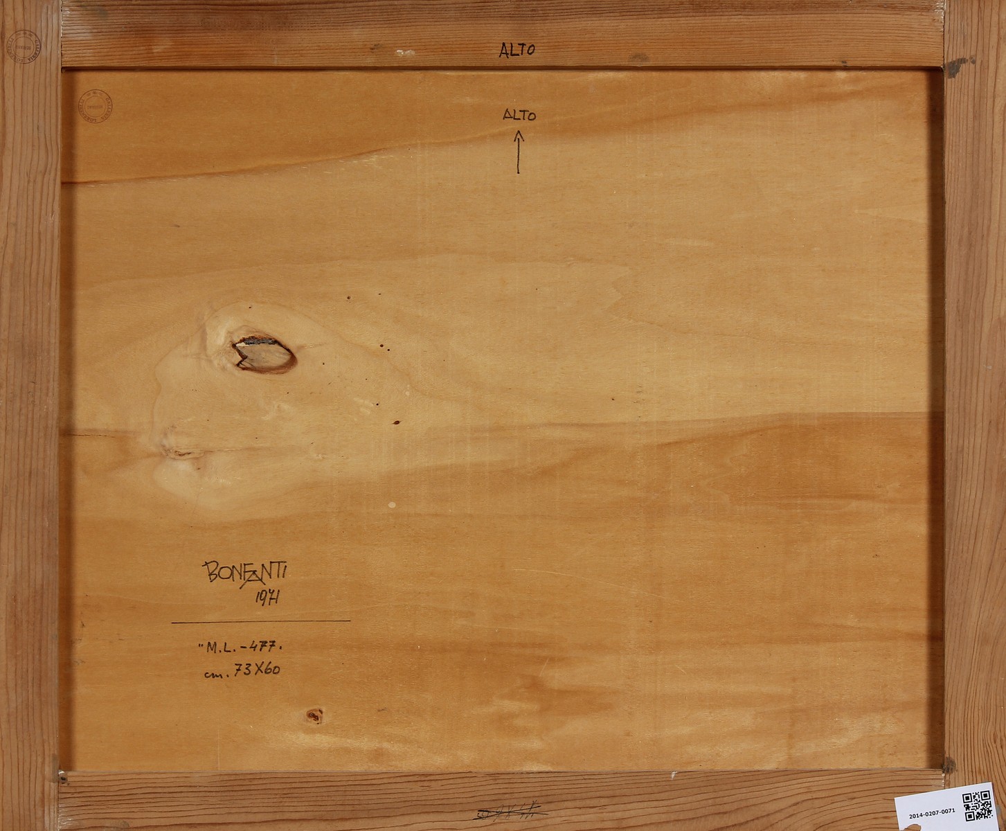 BONFANTI ARTURO (1905 - 1978) M.L.- 477. 1971. Acrilico su tavola. Cm 73,00 x 60,00. Al retro titolo anno firma e timbro della Galleria Lorenzelli. Opera archiviata presso l'archivio delle opere dell'autore a cura della galleria Lorenzelli Arte, Milano, come da documentazione fotografica allegata all'opera riportante il relativo numero d'inventario.