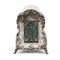 Cassa a "cappuccina" in argento 925/1000 decorata con motivi vegetali e scene di genere, poggiante su quattro piedini fogliati. Quadrante in smalti guilloché nei toni del verde con decori floreali perimetrali, numeri romani e sfere dorate.