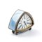 Cassa in argento 900/1000 di forma triangolare poggiante su piedini sferici, con smalti guillochè nei toni dell'azzuro e cornici in smalto bianco. Quadrante in smalti guilloché nei toni del bianco con numeri arabi e sfere nere.