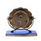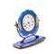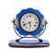 Cassa in argento 925/1000 con smalti guilloché nei toni del blu con decori floreali policromi poggiante su basamento basculante, quadrante bianco con numeri romani e sfere nere.