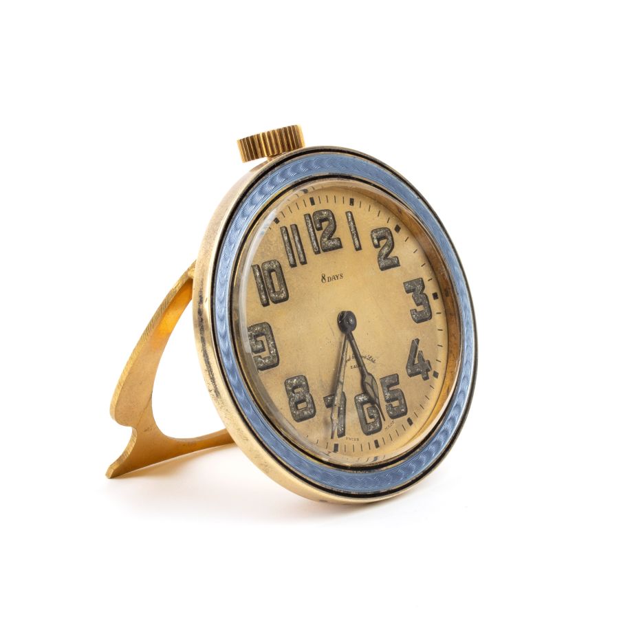 Lotto 151 | Ashford & Davis Ltd: Orologio da tavolo Art Déco in metallo dorato e smalti. Inghilterra, Anni '10 - '20