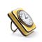 Cassa in metallo con smalti guilloché nei toni del giallo con cornici nere, quadrante in smalto bianco con numeri arabi e sfere nere riportante l'iscrizione "8 Jours". Nella parte posteriore del meccanismo l' iscrizione "Huitaine".